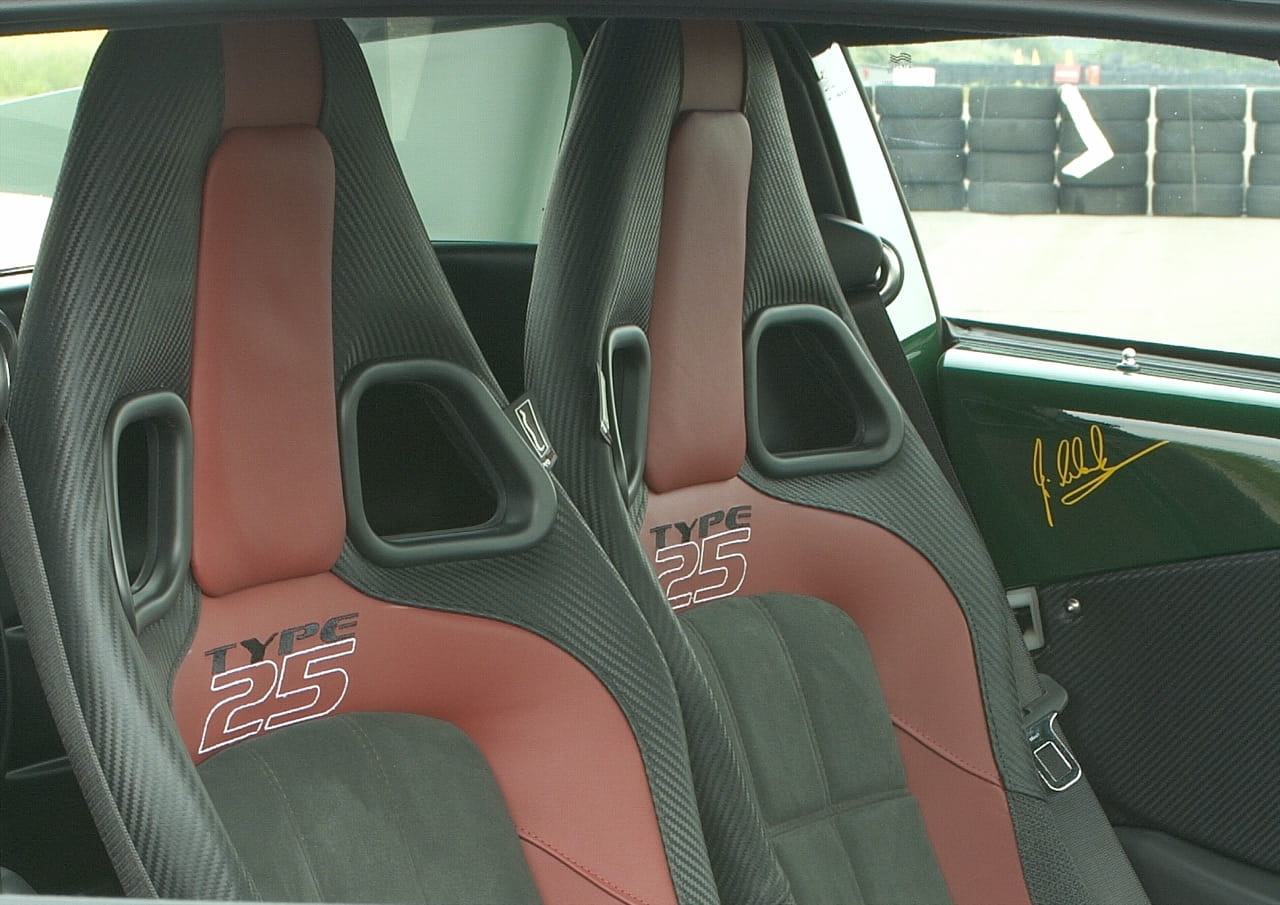 El techo de esta edición es totalmente rígido y sigue el patrón de colores, contrastando en todo caso con las clásicas llantas de aleación de competición con borde plateado y plato en negro o con las tradicionales entradas de aire que mantienen su tonalidad oscura. Los recuerdos de competición permanecen en el interior, inspirado en el Team Lotus Formula 1, con elementos en madera como el pomo del cambio o los asientos deportivos tipo baquet en tonalidad oscura con franja en rojo y bordado “Type 25”.