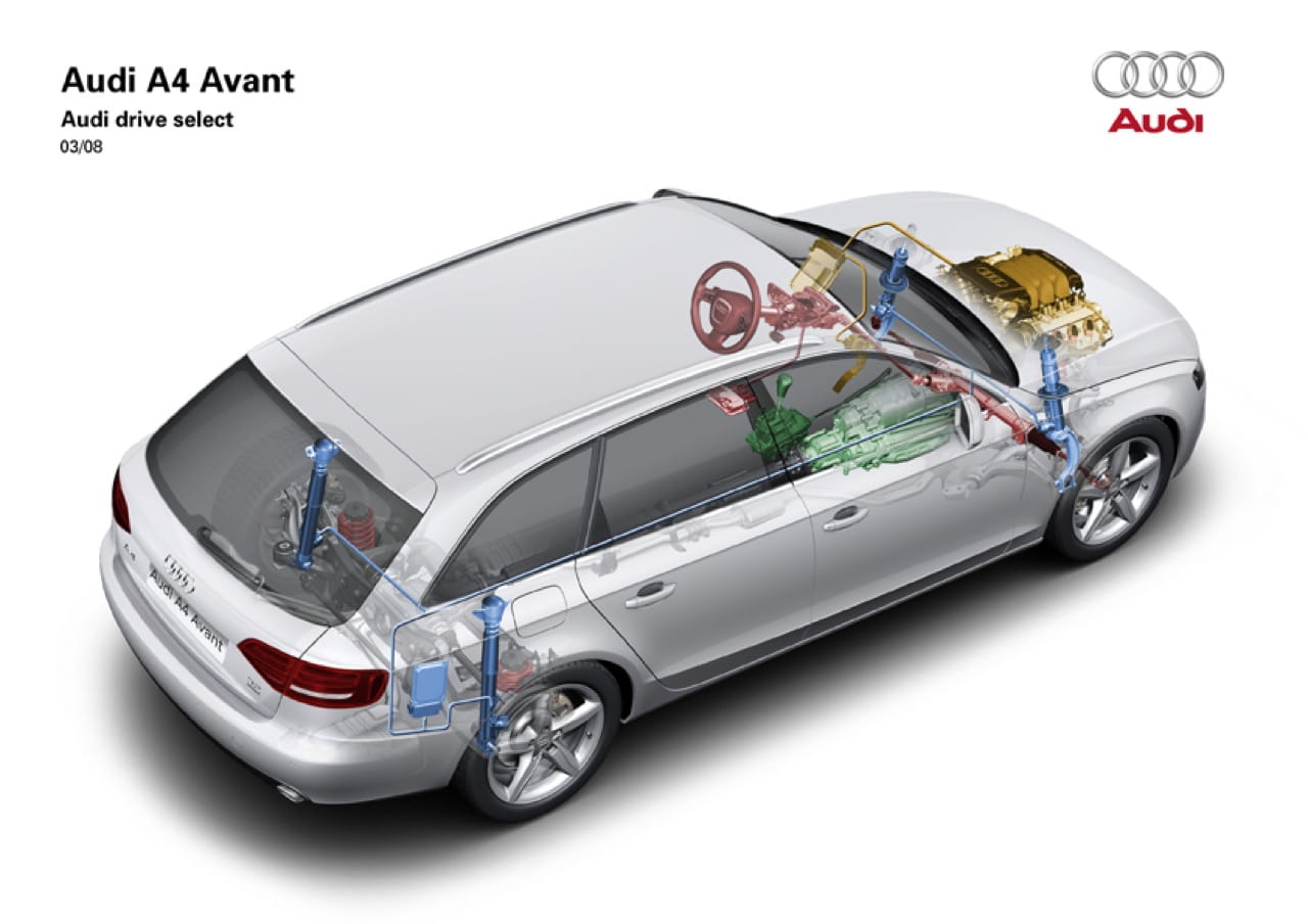 Una de las novedades del A4 Avant es la combinación de airbag adaptativos, los pretensores de cinturón con limitadores de esfuerzo variables y los sensores de posición en los asientos delanteros, que permiten fijar la fuerza del airbag y la tensión del cinturón según la posición del asiento. Entre otros elementos opcionales incorpora el Audi Drive Select, un sistema que puede automatizar según varios “programas” los parámetros de la aceleración, de la caja de cambios, de la amortiguación, de la asistencia de la dirección etc.