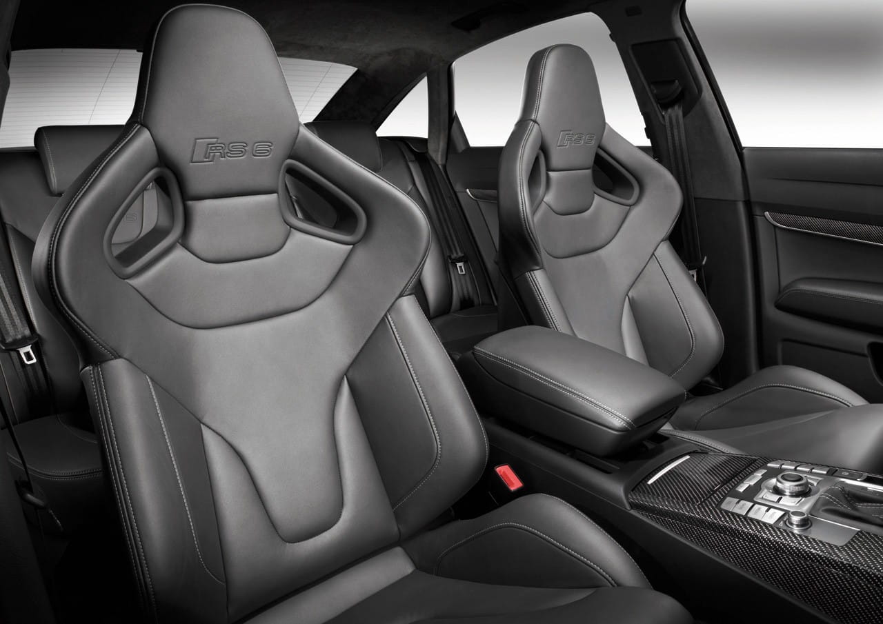 De serie el RS6 incluye climatizador automático bi-zona, un sistema de sonido Bose, un indicador de presión de los turbos o el asistente de aparcamiento con sensores frontales y traseros. Estéticamente, los asientos deportivos comentados se adornan en Silk Nappa por defecto, contando con un ajuste eléctrico completo, y el volante marca el logotipo RS con piel especial y botones multifunción.