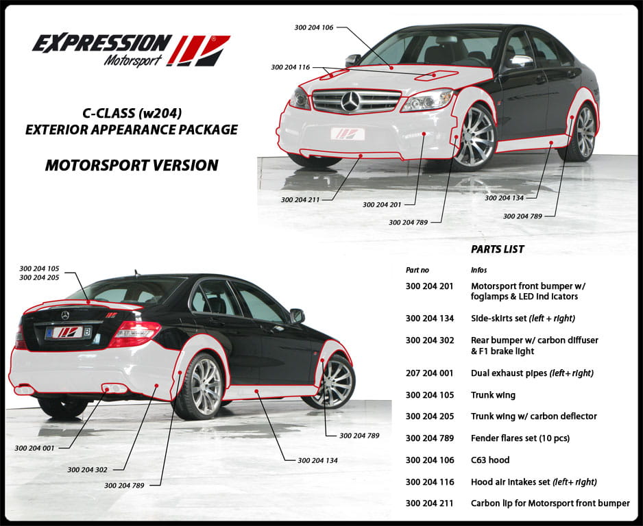 El preparador belga Expression Motorsport ha lanzado al mercado un kit para aquellos poseedores de un Clase C 2008 (W204), a los que la línea de su coche les resulte un poco anodina. Para ello se han inspirado en el campeonato alemán de turismos DTM, creando un kit aerodinámico denominado DT Motorsport.