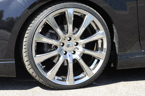 Aunque deja las ópticas o la calandra sin tocar, ya sólo la utilización de un spoiler delantero con más pico permite ofrecer una imagen diferente, con su parte central en fibra de carbono. En la vista lateral, unas llantas multiradiales de aspecto metalizado y gran tamaño permiten ofrecer un perfil de rueda de lo más bajo hasta la fecha en el modelo americano, sin olvidar que ayudan a dar mayor presencia los abultados estribos laterales y las lunas traseras tintadas.