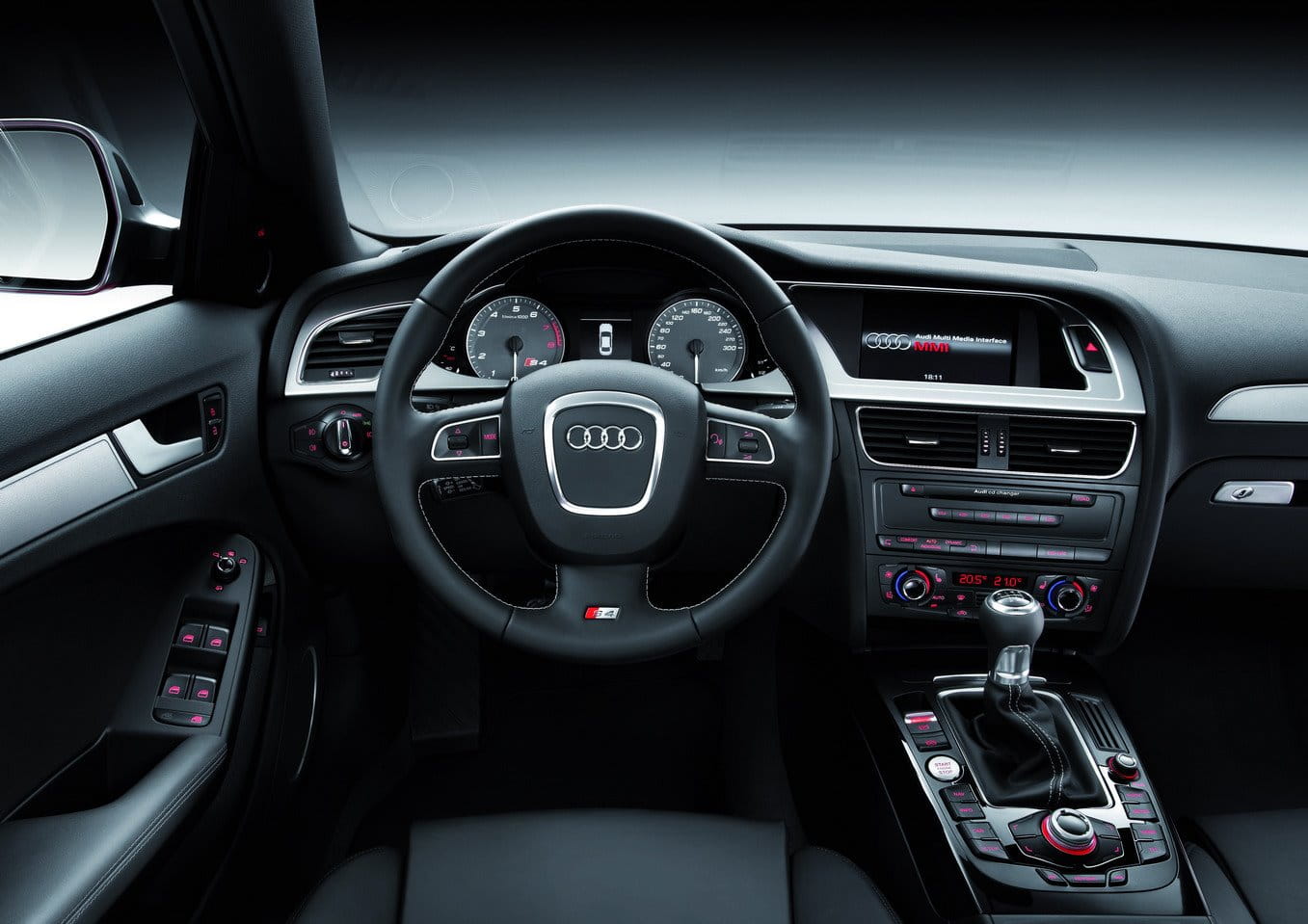 Centrándonos en la apariencia, el Audi S4 es distinguible perfectamente por su nueva parrilla metalizada o por los retrovisores con cubierta con símil de aluminio. Cromados también son las llantas de aleación, unas S-design de 18” de diámetro, así como los cuatro tubos de escape repartidos de dos en dos. El interior intercambia el brillo por los colores oscuros, gastando un tema principal en gris oscuro. Como novedades, los asientos son deportivos, sin llega a auténticos baquets, y el display del conductor adquiere diales con fondo gris y agujas en blanco.