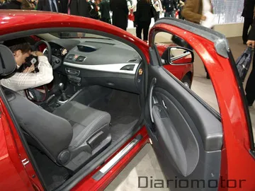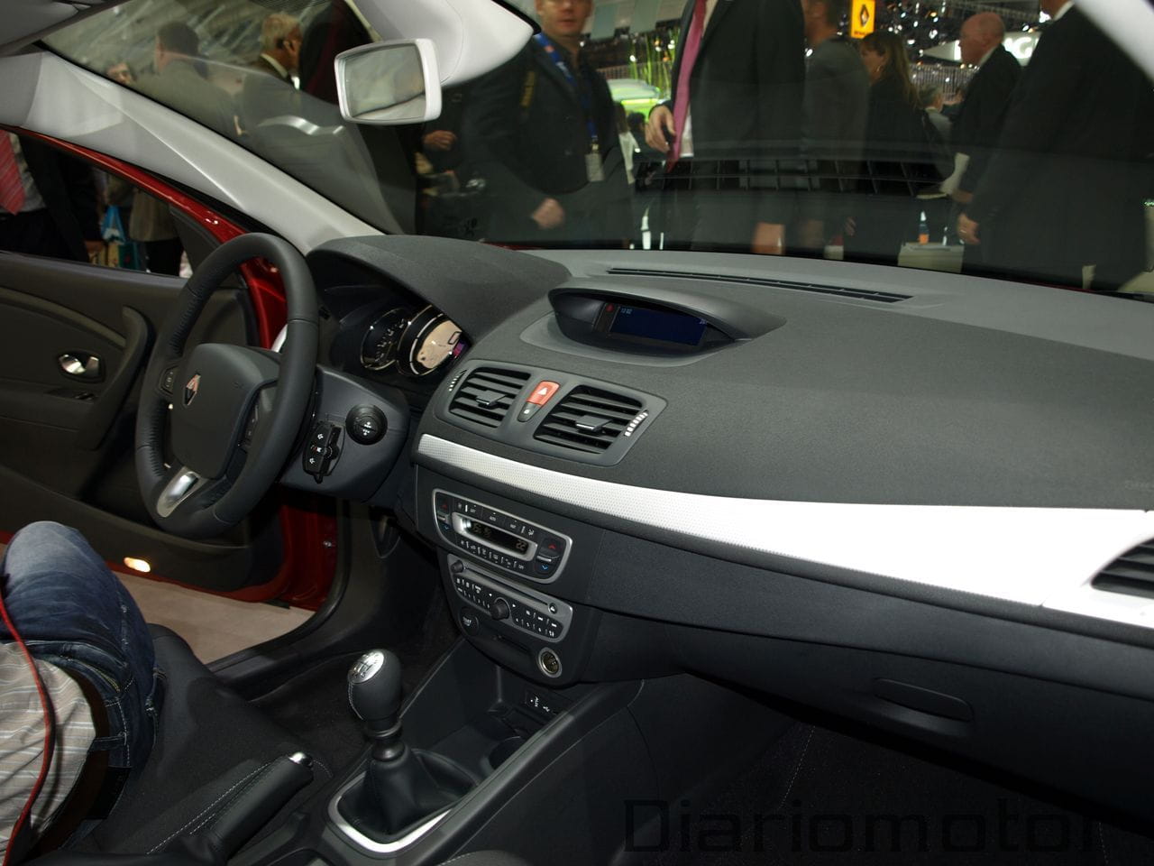 Tal y como os adelantamos, el pequeño hatchback se diferencia especialmente por sus formas en la delantera, con su extensión de los faros, y en la trasera, con una terminación más deportiva y unos pilotos más agresivos. Adentrándonos en el interior, éste guarda una cierta constancia con el Mégane anterior, aunque destaca por ofrecer una transgresión en ciertos aspectos. Por ejemplo, destaca bastante el tablero de displays de conductor. En lugar de los dos diales laterales, el Mégane Coupé incorpora de izquierda a derecha cuentarrevoluciones, velocímetro y el display del ordenador de a bordo.