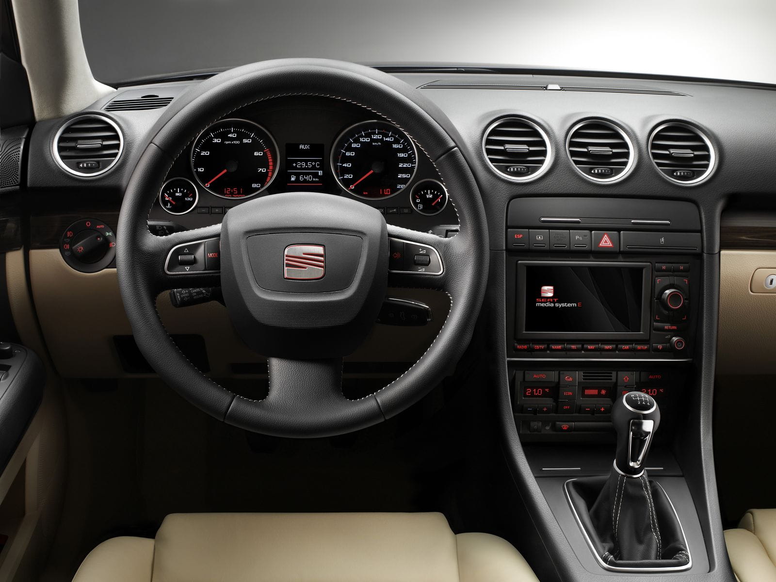 En el frontal destaca la nueva calandra, estrenada en los Ibiza y que a buen seguro se convertirá en uno de los códigos estilísticos de futuro para los de Martorell. Los faros delanteros son grandes y afilados, ideales para una buena visibilidad en carretera. En cuanto a la línea lateral, es idéntica a la del Audi A4, recta y sobria. La zaga es suave, de formas más redondeadas que el resto del coche, las grandes ópticas recuerdan vagamente a las del monovolúmen Altea XL.