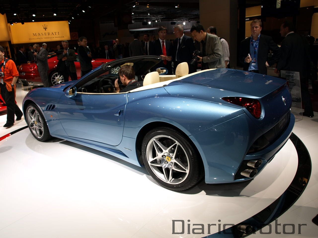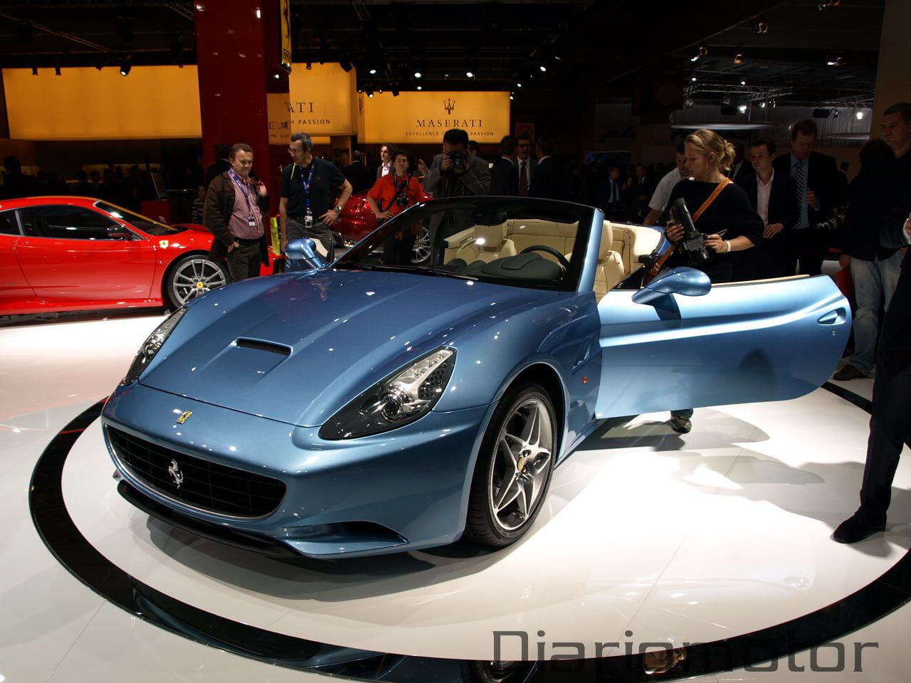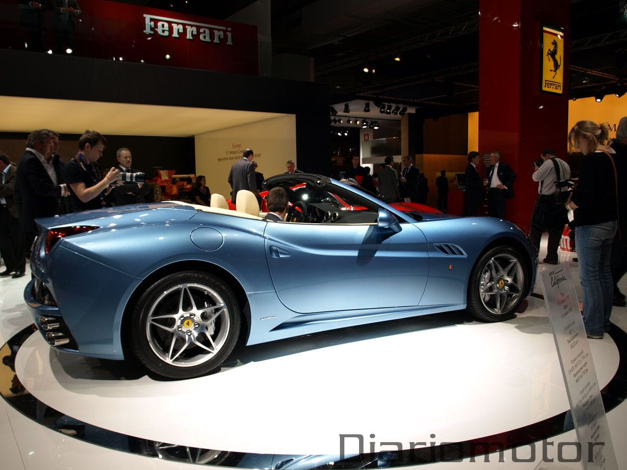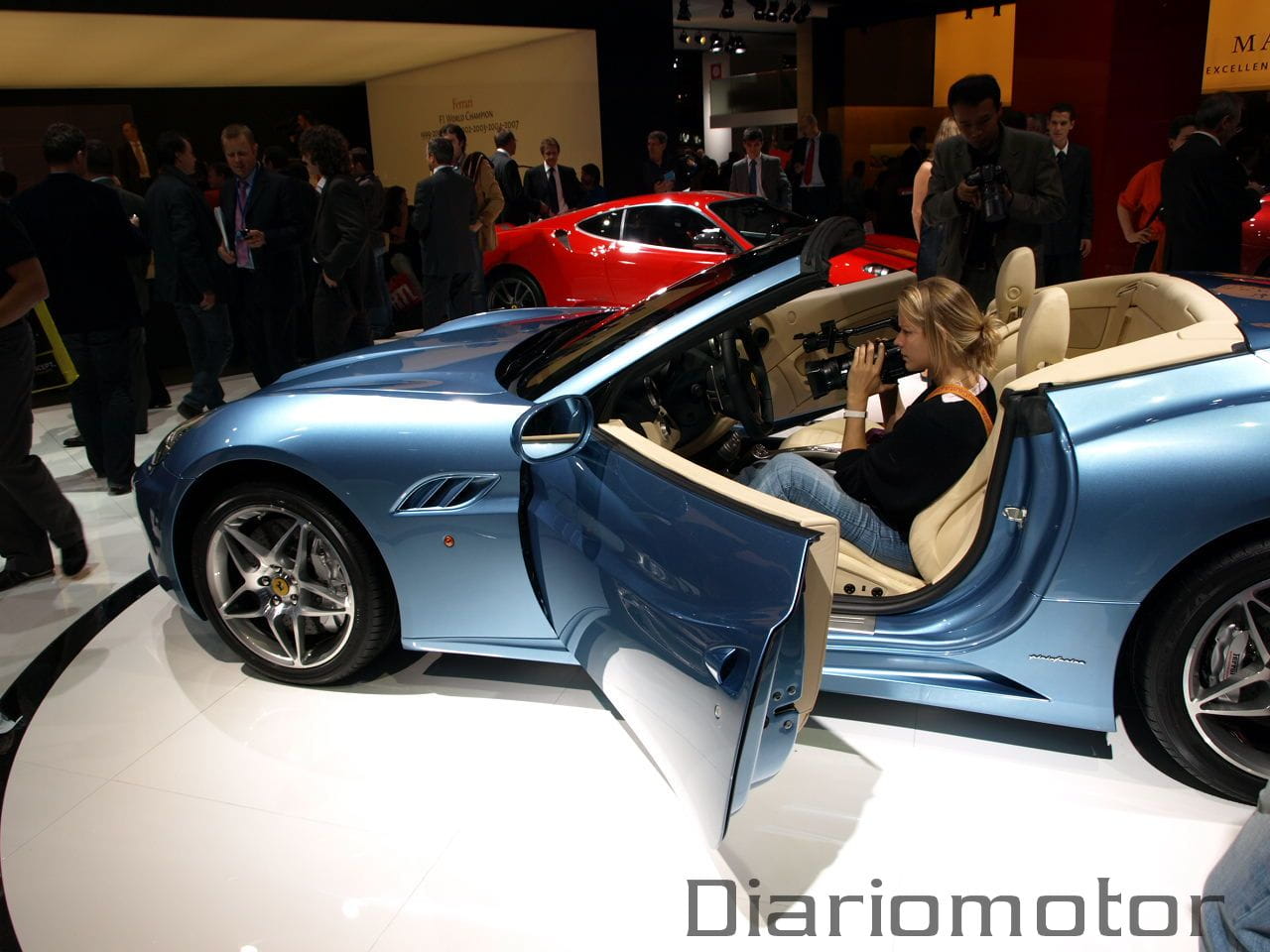 No hay duda. A pesar de las grandes presentaciones de otras marcas en el Salón de París, incluyendo firmas deportivas como Lamborghini, la visión del Ferrari California eclipsó a parte de los stands circundantes. Ferrari llevó a la capital francófona su nueva estrella de la gama en forma de dos ejemplares, uno azul con el que disfrutar de su interior, y uno rojo, para apreciar perfectamente todas sus líneas externas.