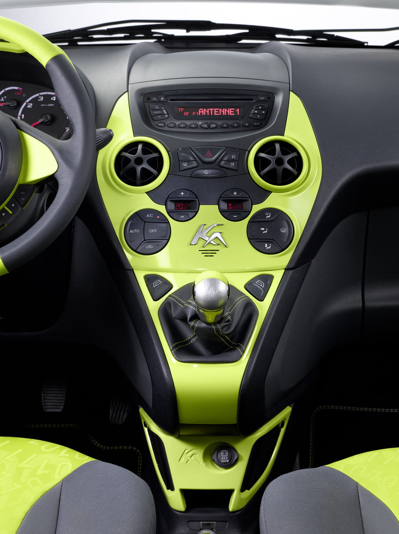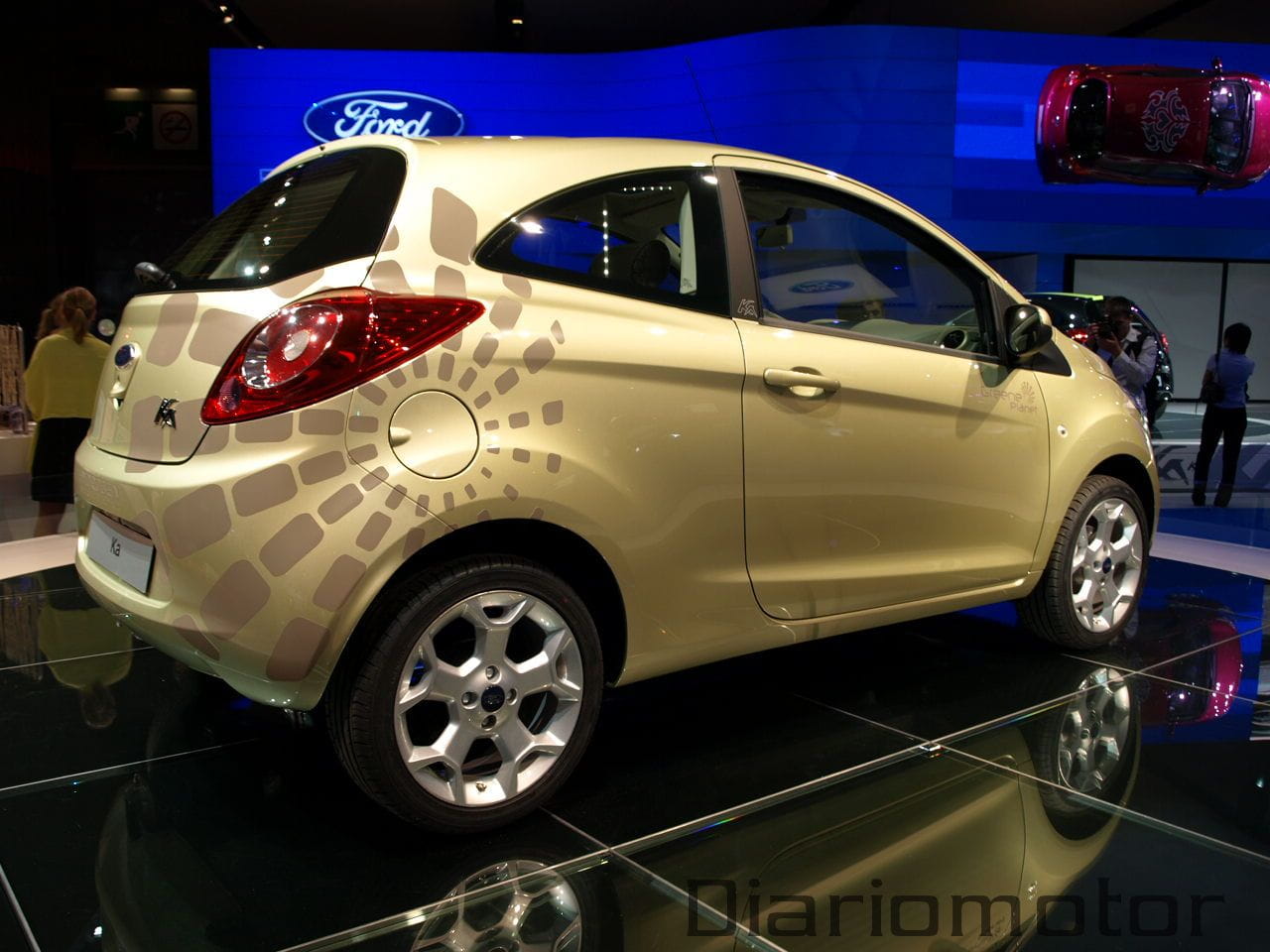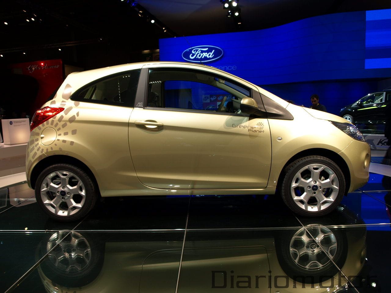 Ford ha mostrado también en el salón el Ka Bond, la versión que incluye la denominación Greene Planet para distinguir su vinilo exterior. A juego incluye unas llantas de aleación de 14” de diseño conocido y las defensas en el mismo color. Incluye un tapizado de cuero Bond para los asientos y una electrónica proporcionada por un ordenador de a bordo, entre otros elementos más comunes.
