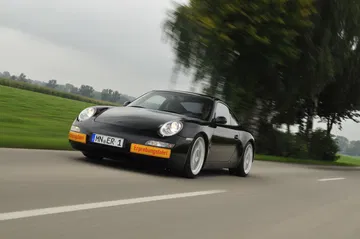 Las especificaciones del propulsor se cumplen, el enorme par máximo de 650 Nm desde las 0 rpm se mantiene, pero los 4 segundos prometidos en el 0 a 100 km/h se desvanecen, quedándose en alrededor de 7 segundos. A pesar de una eficiencia de alrededor del 90% para el motor eléctrico, sus 96 baterías de 5.6 kg/unidad (550 kg en total) suponen un lastre importante de cara a la conducción deportiva. El peso total de este peculiar 911 se cifra en 1.9 toneladas.