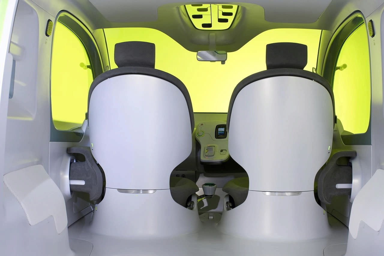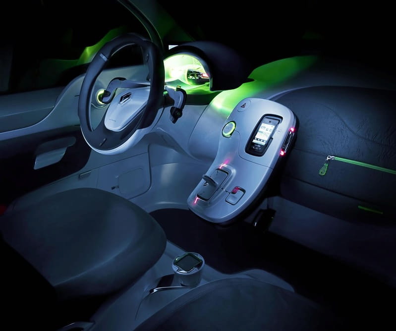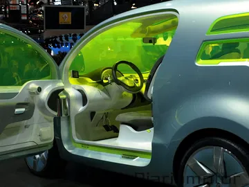 Cuenta con tecnologías de utilidad directa como las luces LED delanteras, la cámara de visión trasera o la utilización masiva de gel en las defensas para minimizar los daños en un posible atropello a un peatón. Hablando de suavidad, el Z.E. es a la vista una especie de vehículo acolchado, impresión que causa sobre todo por su tono pastel imperante y sus lunas en verde fosforito. Así es la impresión de un prototipo que encauza en su interior una vertiente futurista, de volante y mandos, con toques ciertamente “retros” como algunos bolsillos accesibles con cremallera.