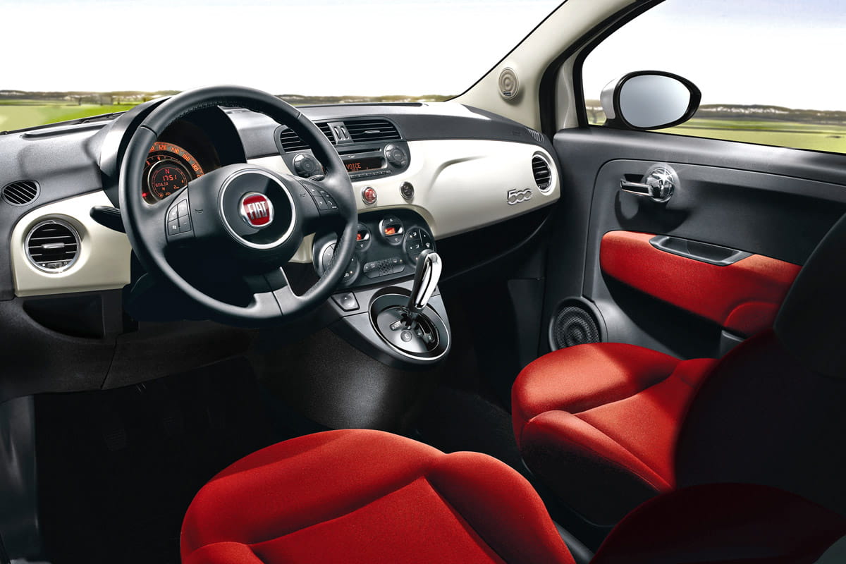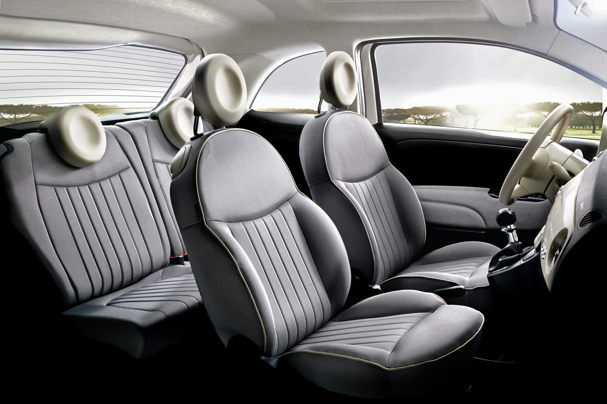 El Fiat 500 distribuye su equipamiento en tres niveles diferentes, nombrados Pop, Lounge y Sport. Desde el más bajo cuenta con un suculento equipamiento de seguridad, incluyendo ABS+EBD, 7 airbags, dirección asistida eléctrica, ordenador de a bordo y cinturones con pretensores y limitadores de carga de serie. El control de tracción no está disponible pero sí el control de estabilidad ESP, opcional en todos lo equipamientos pero con un precio muy adecuado. También incorpora desde el acceso los retrovisores con configuración eléctrica y el radio CD con MP3.