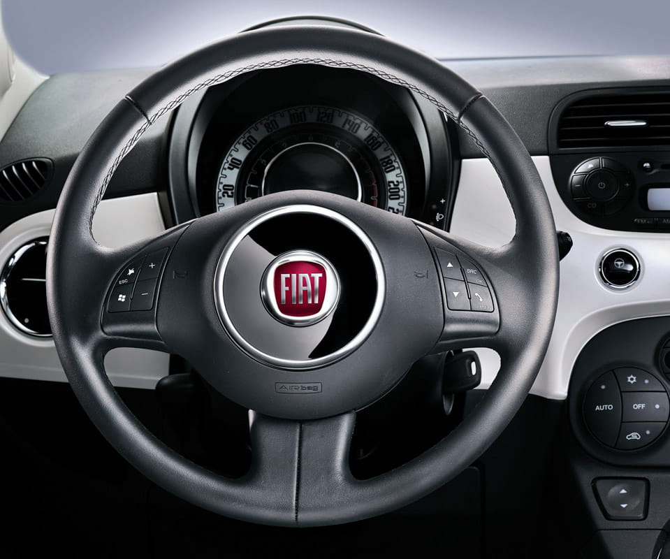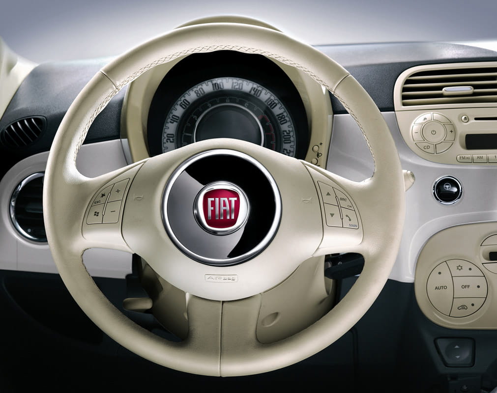 Si algo cabe destacar en el Fiat 500, además de su diseño rompedor para estos tiempos, es su capacidad de personalización. Lo más importante está en el exterior, donde se puede decorar la carrocería con franjas con el color de la bandera de Italia o de aspecto deportivo tanto en el techo como en los laterales. También se puede adornar con el sonoro número 5 en un lateral, al estilo de los coches de carrera, con un “tablero de ajedrez” que alcanza prácticamente a toda la cubierta o combinar una amplia lista de diseños de llantas. Y esto no es todo, el llavero también puede ser “configurado” con estos diseños.