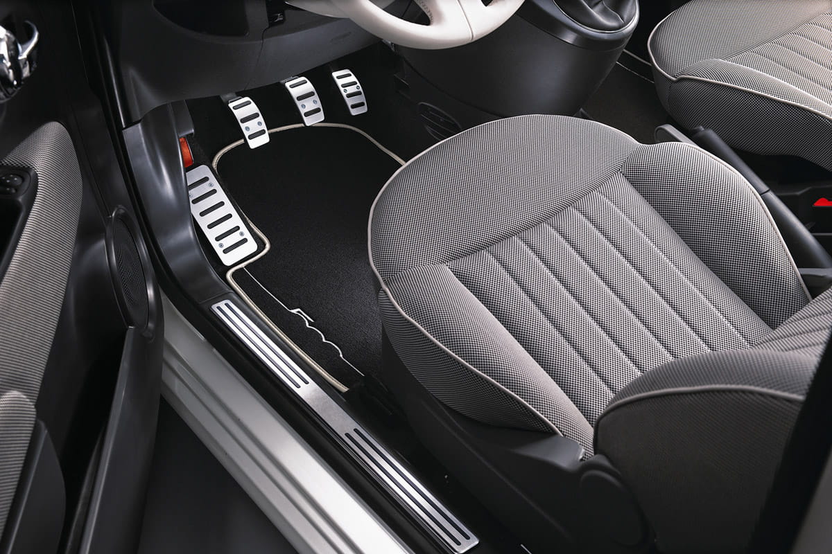 Y todo ello sin olvidar la gran cantidad de combinaciones de colores tanto por fuera como por dentro. Las tonalidades disponibles para la carrocería son el Blanco Bossa Nova, el Gris Breakbeat, el Azul Mod, el Negro Crossover, el Verde Ye Ye, el Naranja Calypso, el Azul Cha Cha Cha, el Rojo Pasodoble, el Gris Punk y el Blanco Funk. Desde luego no se les puede negar la originalidad. Para el interior reservan quince combinaciones diferentes, aunque con unos nombres más sencillos: Rojo y Marfil, Rojo y Negro, Gris oscuro y Marfil, Gris oscuro y Negro, Azul y Marfil, Piel Frau y Negro, Piel Frau y Rojo, Piel Frau y Cuero Vintage, y Piel Frau y Rojo (tonalidad más clara).