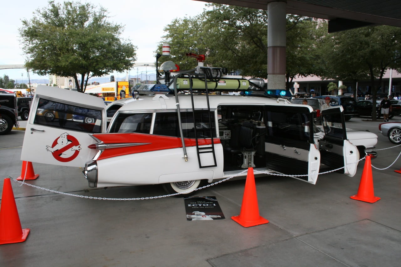 Un alarde de originalidad que hasta alcanzaba a su vehículo estrella, una vieja ambulancia adaptada para transportar los artigulios con los que cazar y vencer a los fantasmas. Está basada en la Eureka-Cadillac Ambulance del año 59, un clásico entre los clásicos dentro de los vehículos de servicio utilizados en los Estados Unidos. La Ecto-1, que así fue bautizada en honor de la definición parasicológica de ectoplasma), ha sido recompuesta para celebrar el 25 aniversario de la película de la mano de Sony para hacerle unas cuantas mejoras.