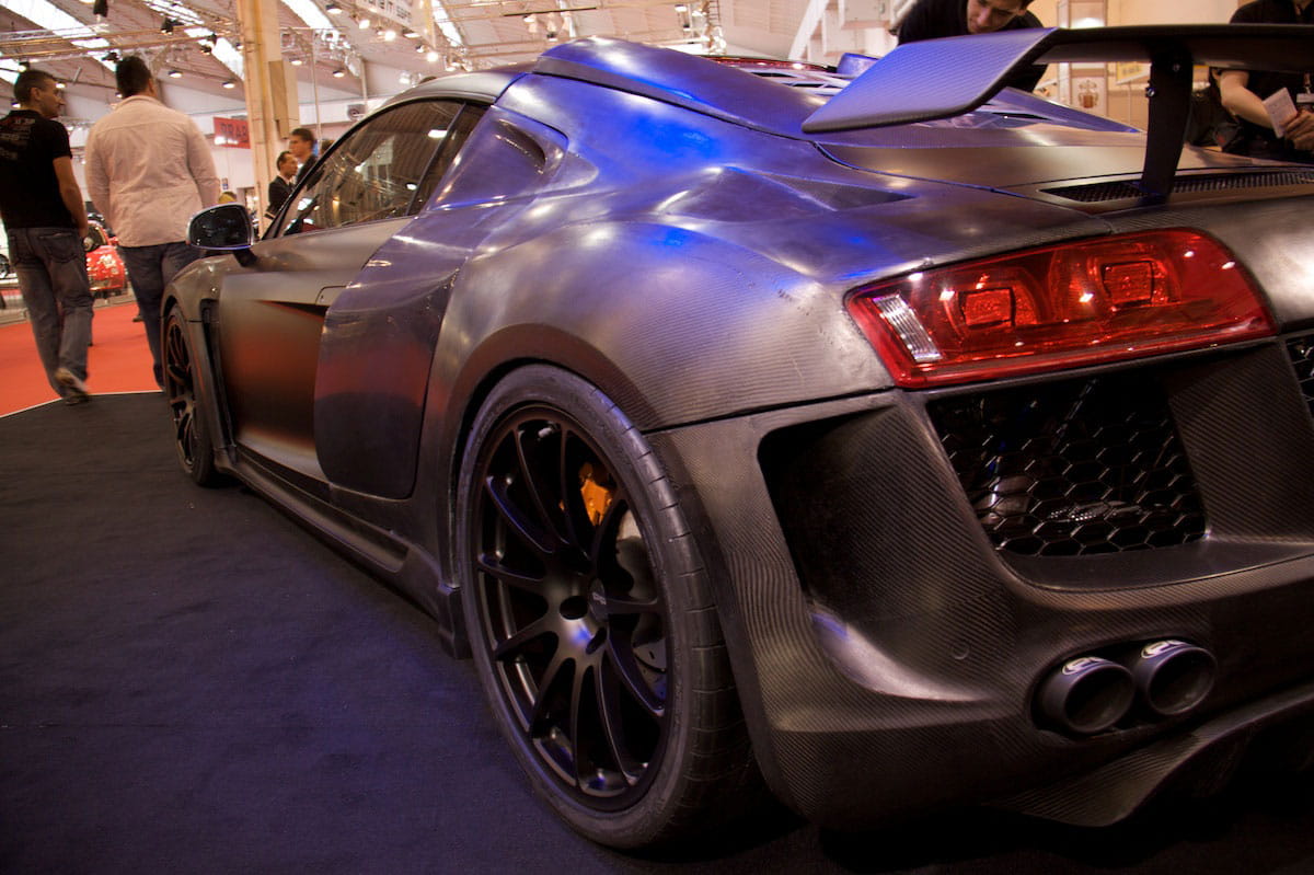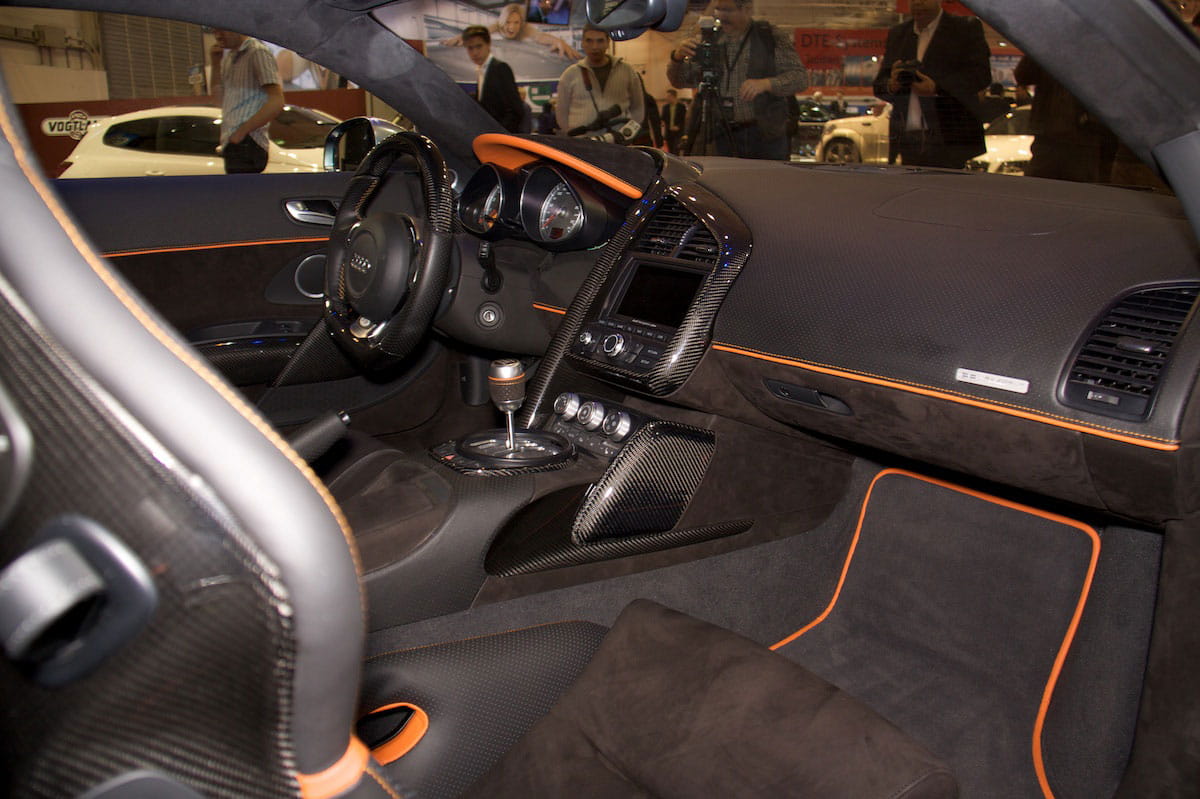Realmente hay pocos complementos puramente estéticos. Por ejemplo, el aspecto del deportivo es intimadante y agresivo pero cumple una función. Sin embargo la pintura especial color negro da un acabado galáctico a la carrocería del Razor y su habitáculo estrena diferentes aditamentos como la sustitución de los paneles y molduras por otros de fibra de carbono. Detalles como las ópticas delanteras íntegramente LED aportan un aura tecnológica al R8.