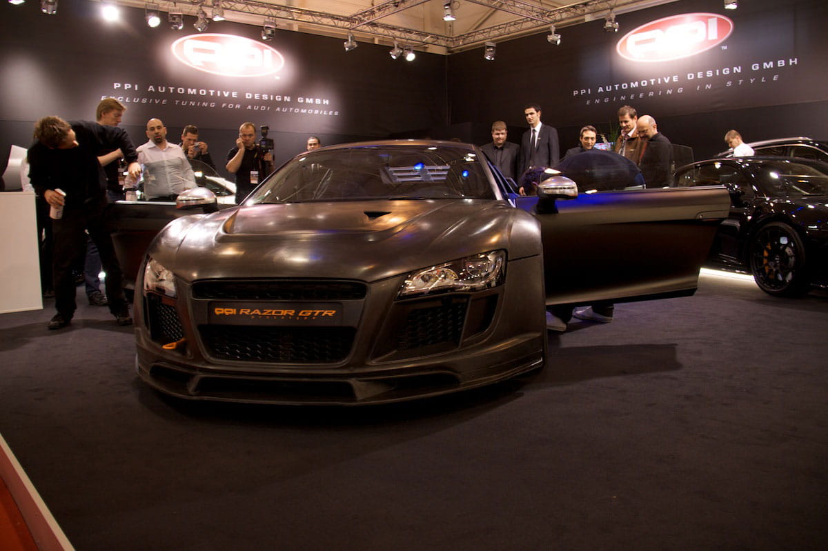 Se ha presentado en el Essen Motor Show el esperado Audi R8 preparado por PPI, el Razor GTR. Ya os habíamos mostrado una recreación por ordenador hace apenas unos días pero ahora aparece ante nosotros en su versión final de manera espectacular. A primer vista llama la tención la deportividad y agresividad que emana del coche, casi parece que estemos ante un Audi R8 GT3 que ante una preparación independiente del superdeportivo.