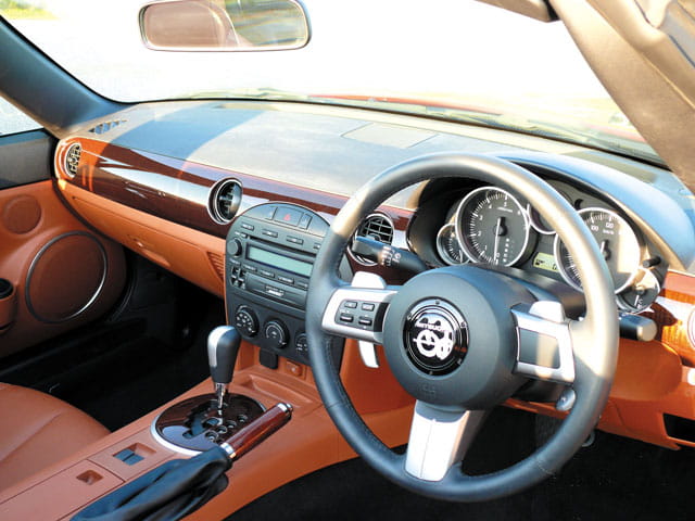 Como si no fueran pocos los puntos comunes con el Miata, el interior es exactamente igual. Tan sólo cambian los materiales que adornan los asientos o el salpicadero, con inserciones de madera incluidas, o el volante, que cambia el logo aunque el formato es el mismo.