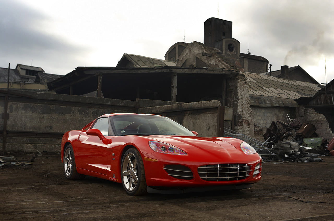 El aspecto exterior de los Corvette pierde parte de su brutalidad americana, estrenando el frontal profusas calandras de rejilla que evocan a Ferrari en los años 60, tales como el 250 GT California. La línea lateral permanece inalterada en su musculosa apariencia y la zaga es reformada de manera importante: por una parte se instalan unos curiosos pilares C semiflotantes y se reforma toda la zona en busca de un aire diferente, aunque el difusor y las ópticas permanecen en su estado de fábrica.