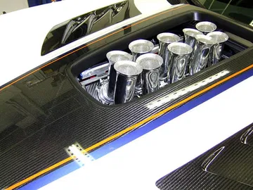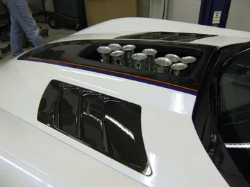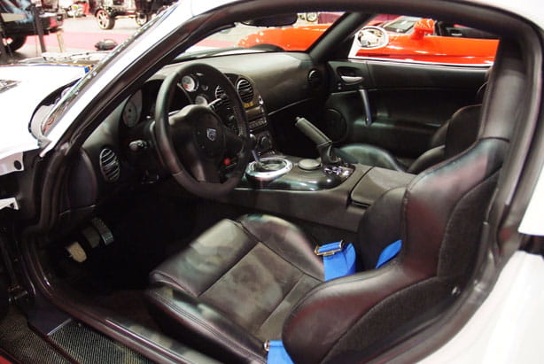 Externamente luce una elegante tonalidad Artic White con líneas en McLaren Red y en Viper Blue, una perfectamente combinación con el negro de la fibra de carbono. Esta se distingue en los huecos de respiración del capó, los bajos, los laterales, el techo y una forma todavía más masiva en la parte trasera. Hasta en las ruedas se guarda un buen ajuste cromático con su borde cromado, su interior negro y las pinzas de los frenos en tonalidad roja. Por dentro tampoco es un Viper convencional, pues añade una moderna piel y unos baquets deportivos con harneses de color azul con cuatro puntos de seguridad.