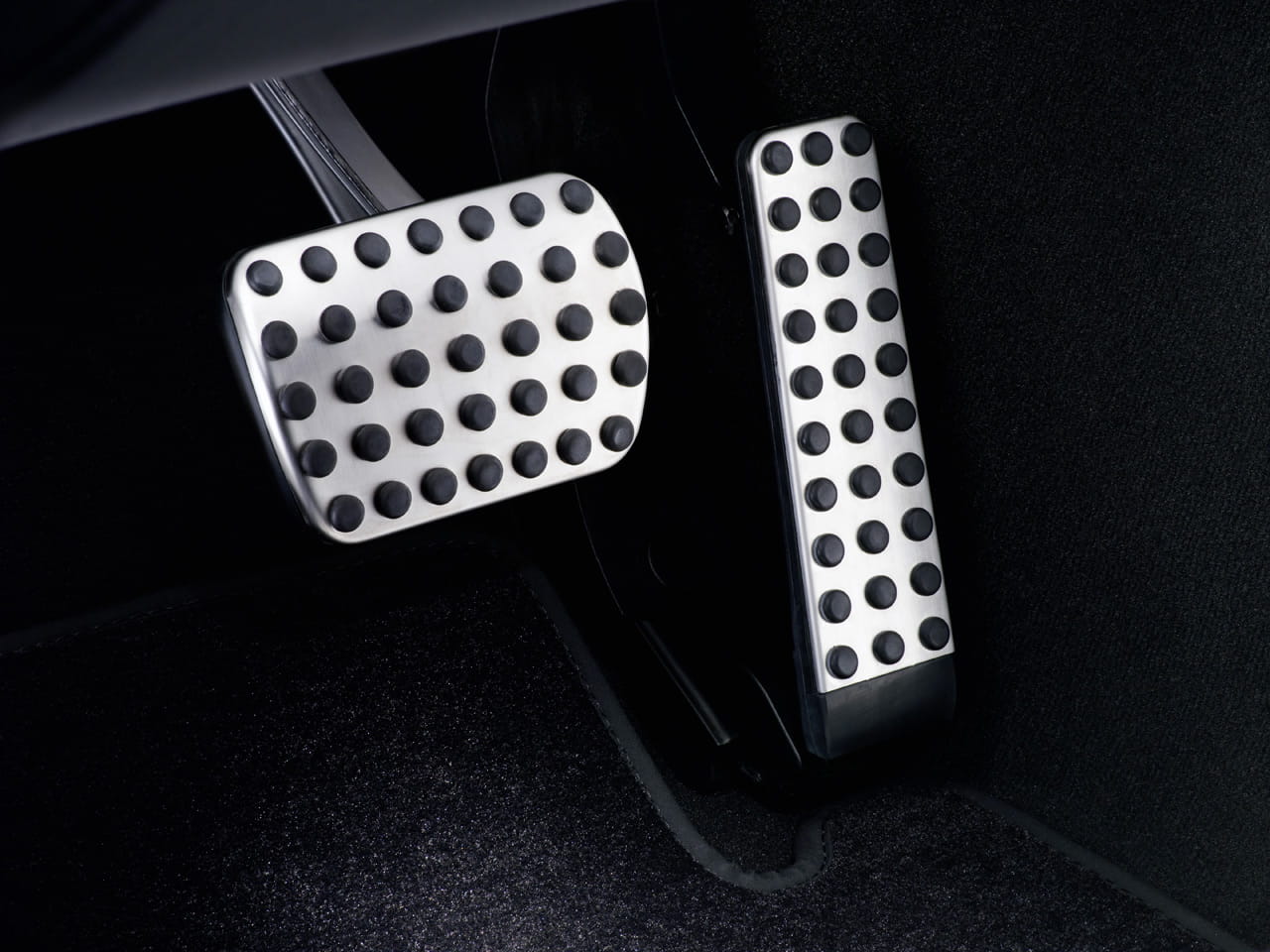 El otro material exclusivo es la madera de laurel, disponible en un acabado pulido o mate y dispuesta en inserciones sobre el volante, la palanca de cambios o las manetas de las puertas. También hay una serie de detalles metalizados, como por ejemplo los de la base del pomo del cambio, en las toberas del aire o con un acabado pulido de acero en los pedales.