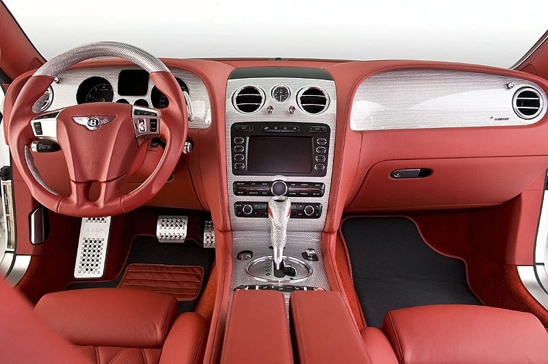 En su interior el asunto es bien diferente pues Hamann se centra en escoger ciertas combinaciones del propio GT para adornarlo. La elegida es una tonalidad roja que completa todo el habitáculo dejando sitio para placas de enrejado “metal” para superponer en las distintas consolas, en el salpicadero enfrente del acompañante o en la parte superior del volante. En combinación con tan brillantes partes un toque también clásico de este preparador, los pedales cromados con su firma.