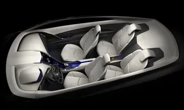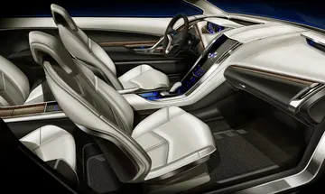 En el interior, al margen de un original diseño, la luz ambiental LED y las pantallas marcan la tónica principal. Desde estas pantallas, táctiles, se puede controlar el manejo del aire, el sistema multimedia o el navegador por satélite. Para el conductor se destaca la información digital de velocidad, autonomía, carga eléctrica, potencia utilizada, etc aunque no hay que olvidar la visión permanente de los ángulos muertos y de la parte trasera del vehículo mediante una serie de cámaras.