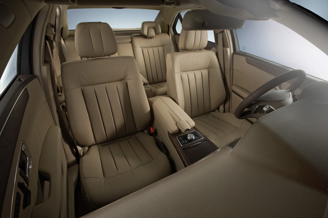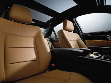 Este sistema, que proviene del Clase S, también cuenta con un modo que permite masajear al pasajero. Para el grupo de asientos traseros también existe la opción del Rear Seat Comfort, una solución que incorpora básicamente un tapizado de cuero, calefacción y parasoles integrados desplegables eléctricamente. Por defecto estos asientos están unidos pero puede solicitarse una separación que incluye una pequeña consola central.