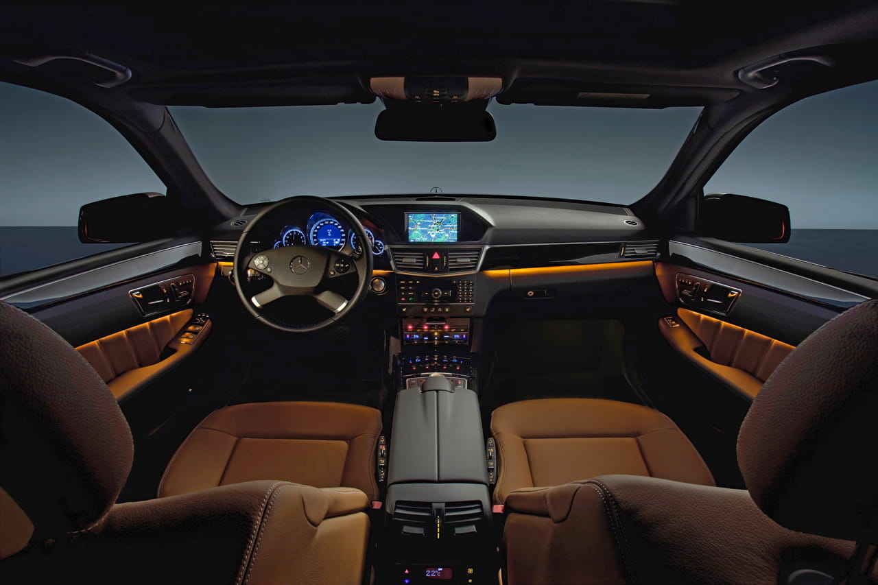 Hay dos acabados disponibles para el Clase E, al menos inicialmente: el Avantgarde y el Elegance. El modelo de acceso arranca con un diseño que comprende llantas de 16” e interior con inserciones de madera de eucalipto y volante con mandos multifunción y tapizado de cuero Nappa. También incorpora el equipo de infotainment Audio 20 CD, la conexión manos libres Bluetooth y una pantalla integrada en el salpicadero desde la que centralizar el control “multimedia”.