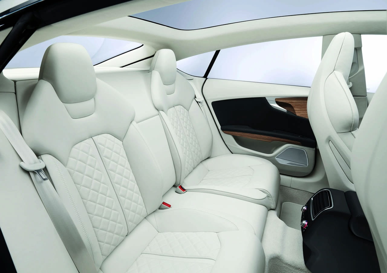 El lateral del Sportback es atravesado por la línea de expresión formada en los faros delanteros, que a la vez que crea una cintura alta con una excepcional pureza de línea, culmina en unos marcados hombros formando la morfología de la zaga. Ésta, compacta y enmarcada con pilotos LED de diseño rompedor, revela la quinta puerta del prototipo – de la que toma su nombre – en un equilibrado ejercicio de armonía estilística. Realmente lograda esta última parte, incluso cuesta apartar la vista.