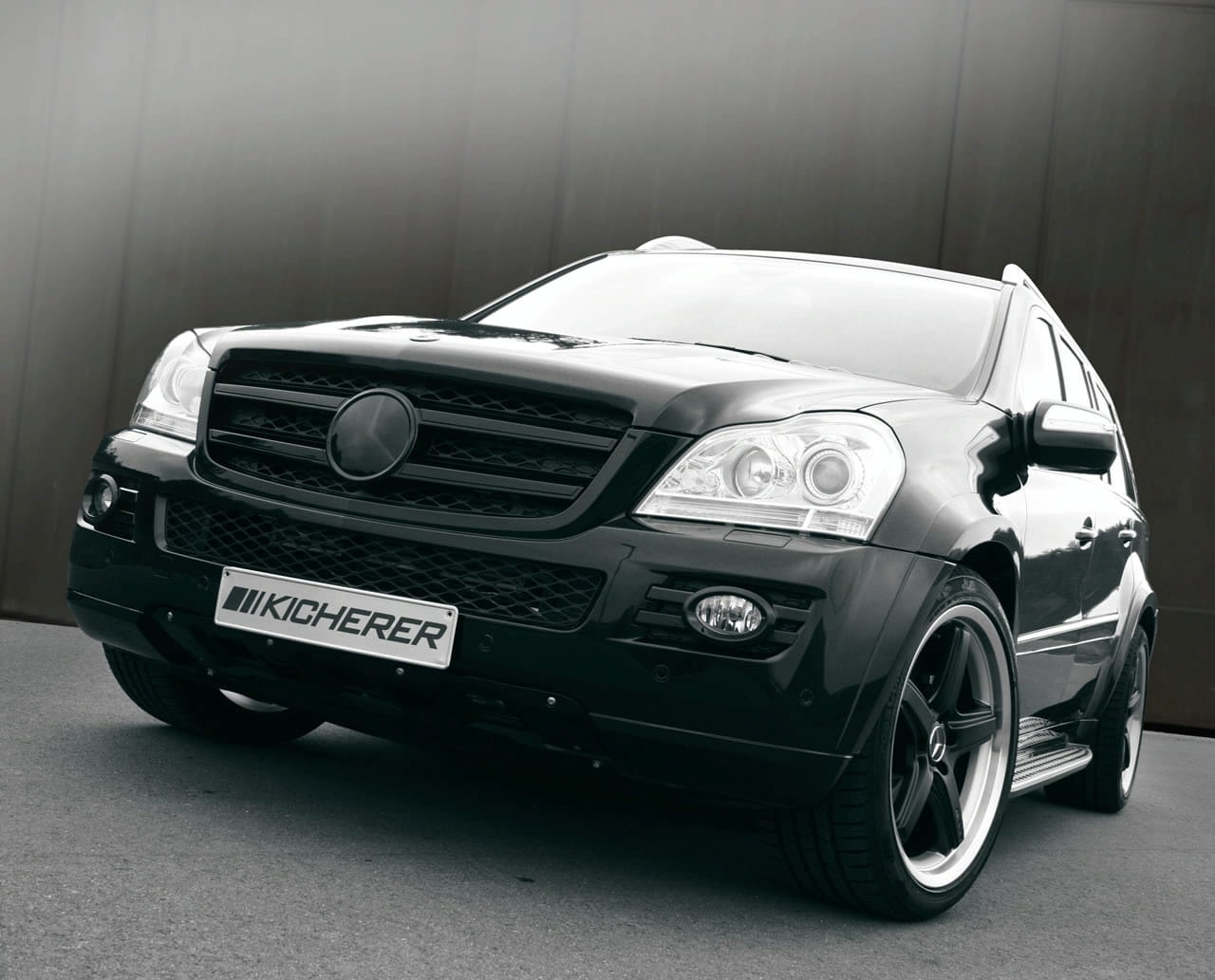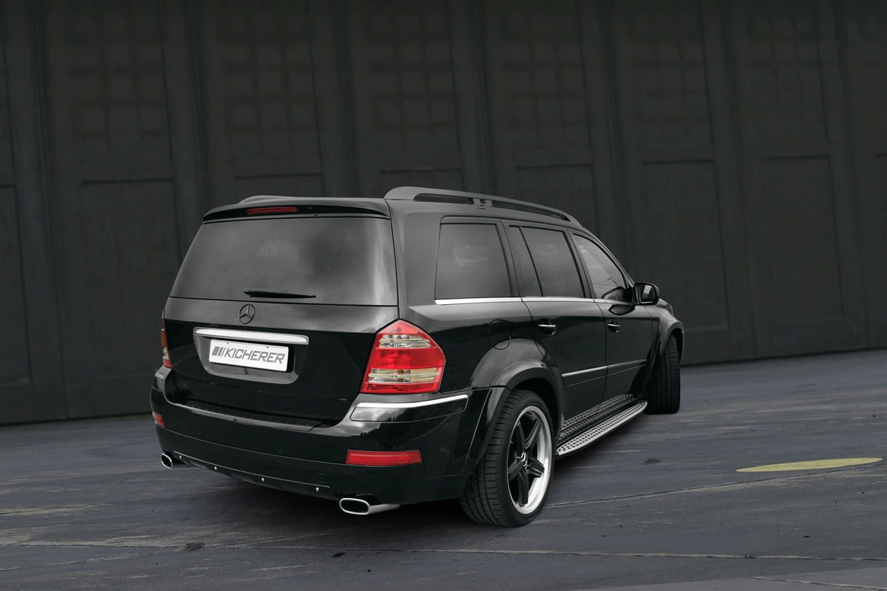 El preparador alemán Kicherer, presenta su nuevo Mercedes GL 42 Black Line, en su habitual línea de sobriedad deportiva acompañada de interesantes potenciaciones de motor. El enorme SUV GL recibe complementos que magnifican el dinamismo de su imponente imagen, haciéndola más atractiva de cara a los compradores a los que su Mercedes GL les sepa a poco. Estéticamente, recibe un pack aerodinámico compuesto por nuevos paragolpes, tanto delanteros como traseros y un discreto spoiler en el techo.