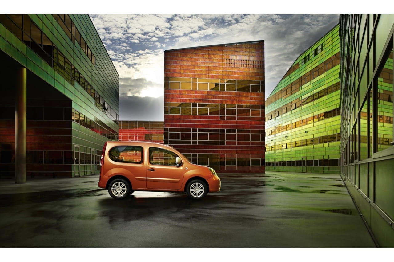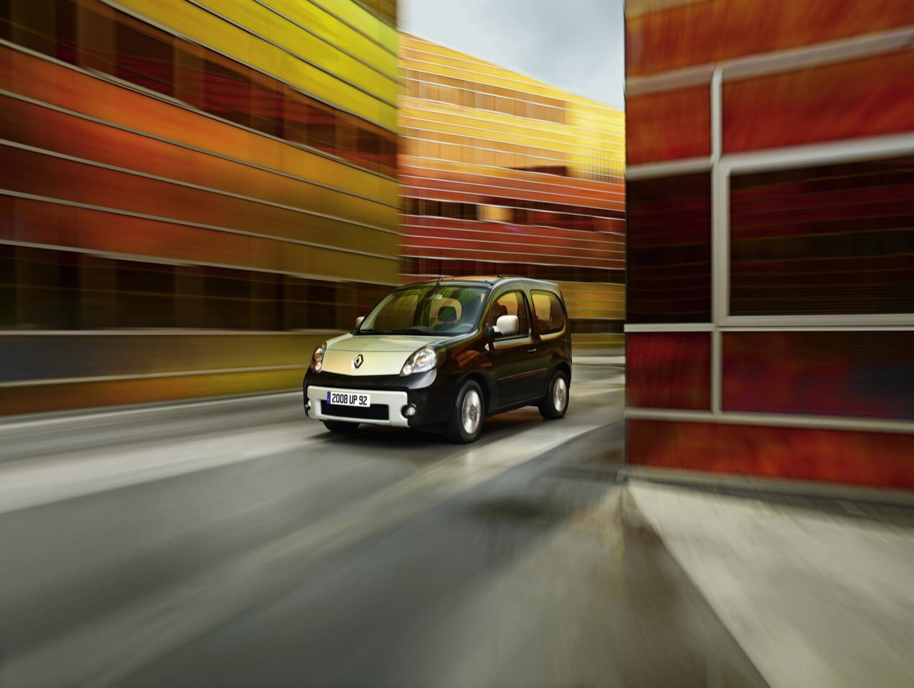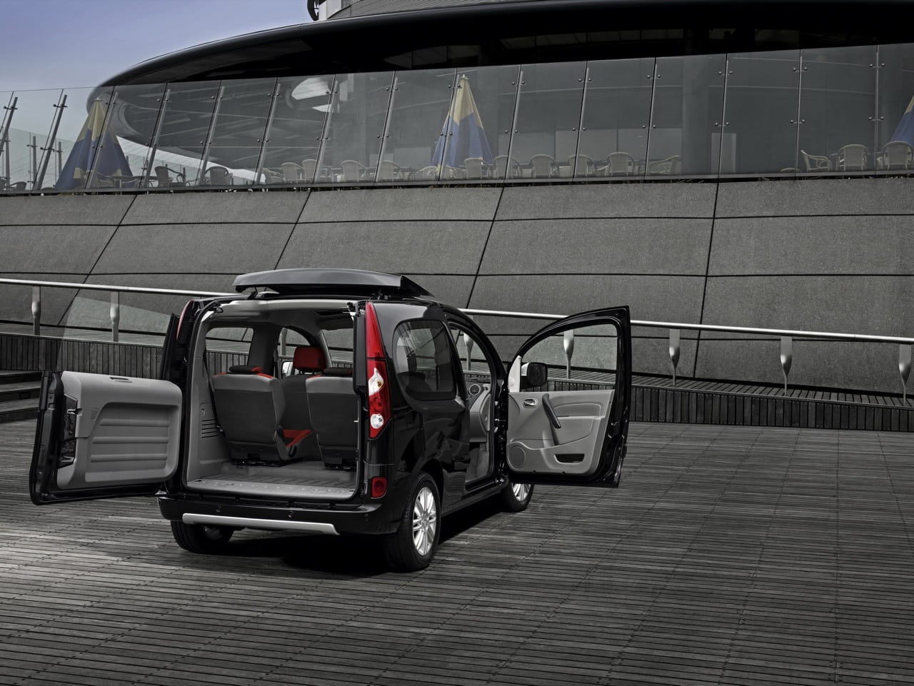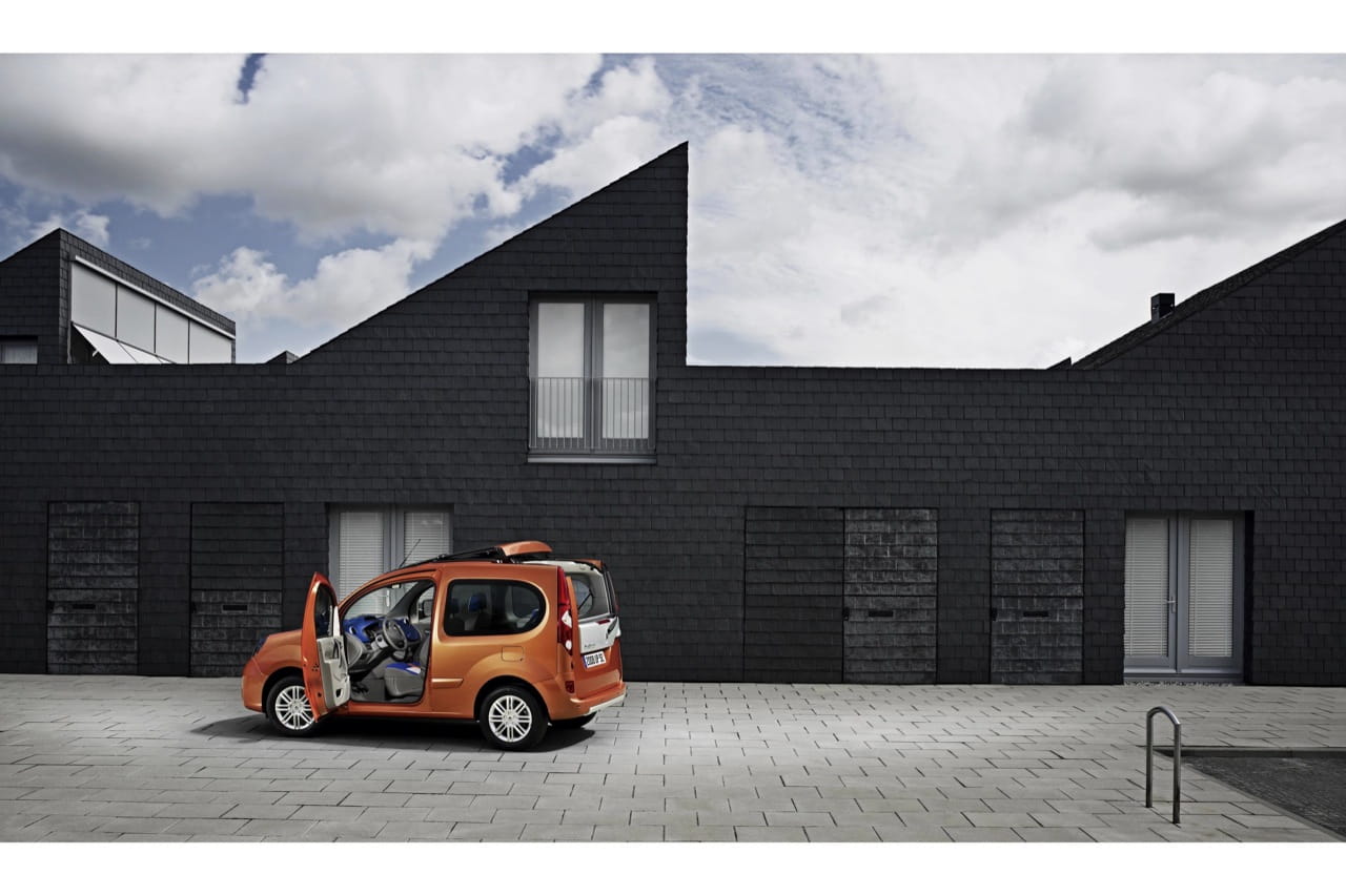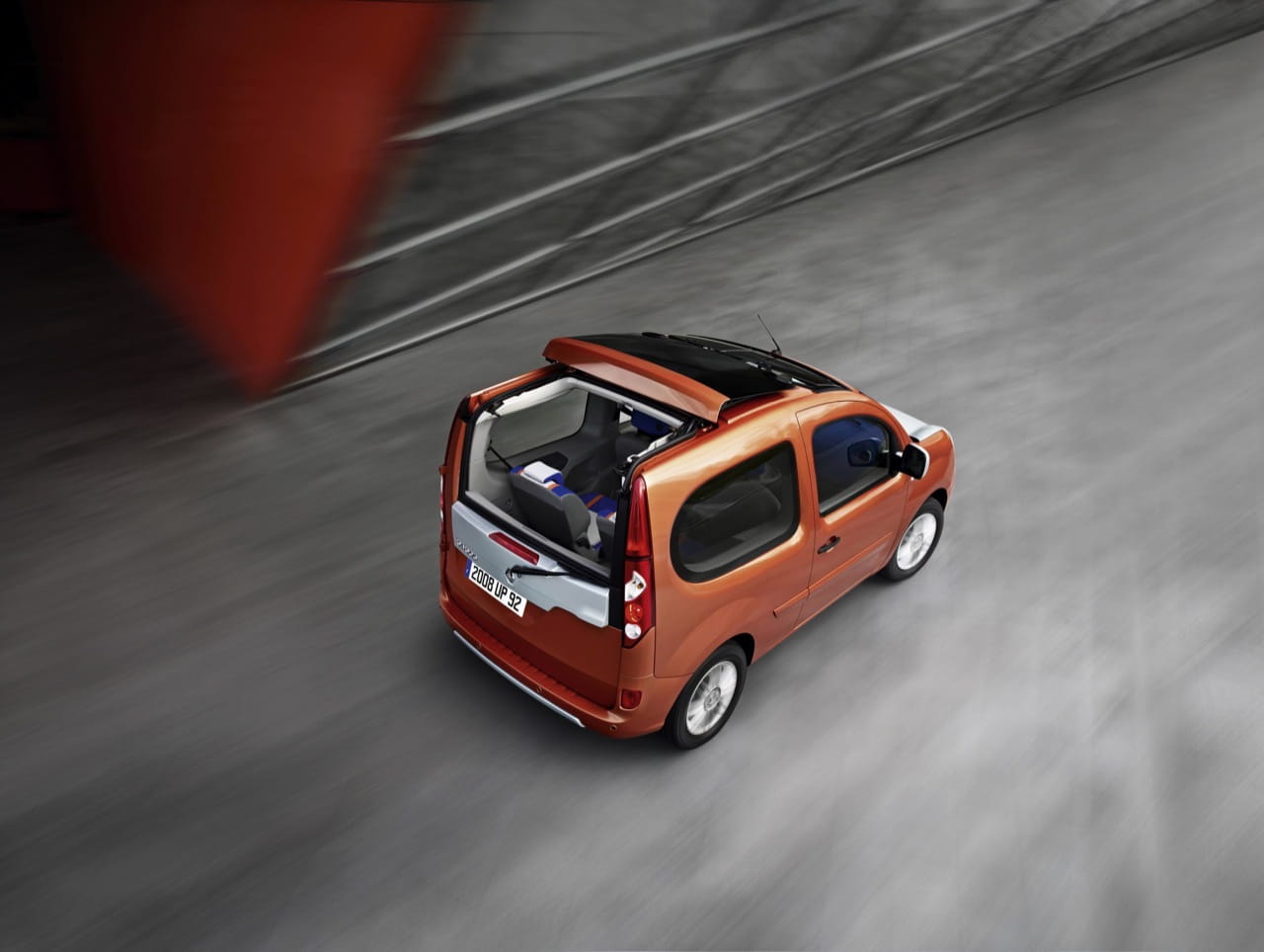 Aunque la carrocería siga siendo la de la Kangoo estándar su funcionalidad ha sido multiplicada esencialmente por la forma de apertura trasera. La luneta de la zaga se puede ocultar en el portón, que se pivota hacia la izquierda, pudiendo simular la utilidad de carga de una pick-up. Esto se explota todavía más pues a partir del pilar B el techo se puede elevar y adelantar. Esto facilita enormemente la introducción de objetos voluminosos o simplemente el hecho de dejar a los pasajeros traseros a techo descubierto.