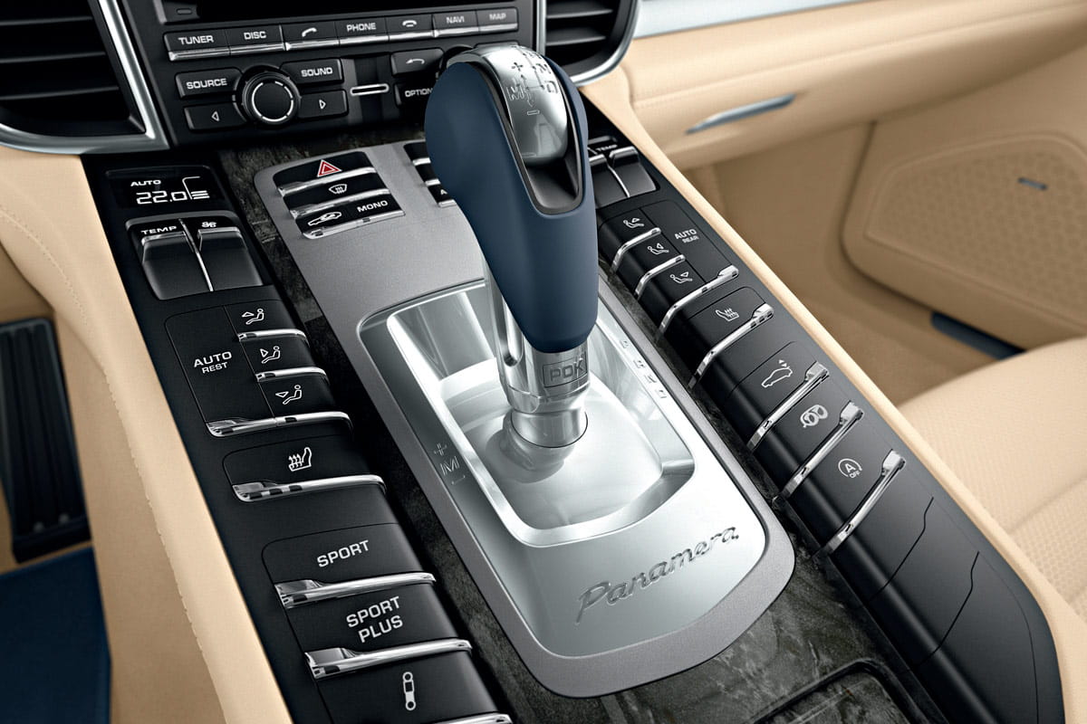 El Panamera S cuenta con propulsión trasera, mientras que tanto el Panamera 4S como el Panamera Turbo cuentan con tracción integral. Las versiones con tracción integral incorporan un cambio automático de doble embrague, denominado “PDK”, la misma que han estrenado recientemente los 911, Cayman y Boxster. El Panamera S estará disponible tanto con cambio manual como con el cambio automático PDK. Al igual que en el Cayenne, el Panamera dispone en opción de suspensión neumática y de estabilizadoras activas, que previsiblemente vendrán de serie en el Turbo.