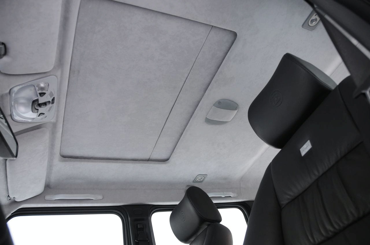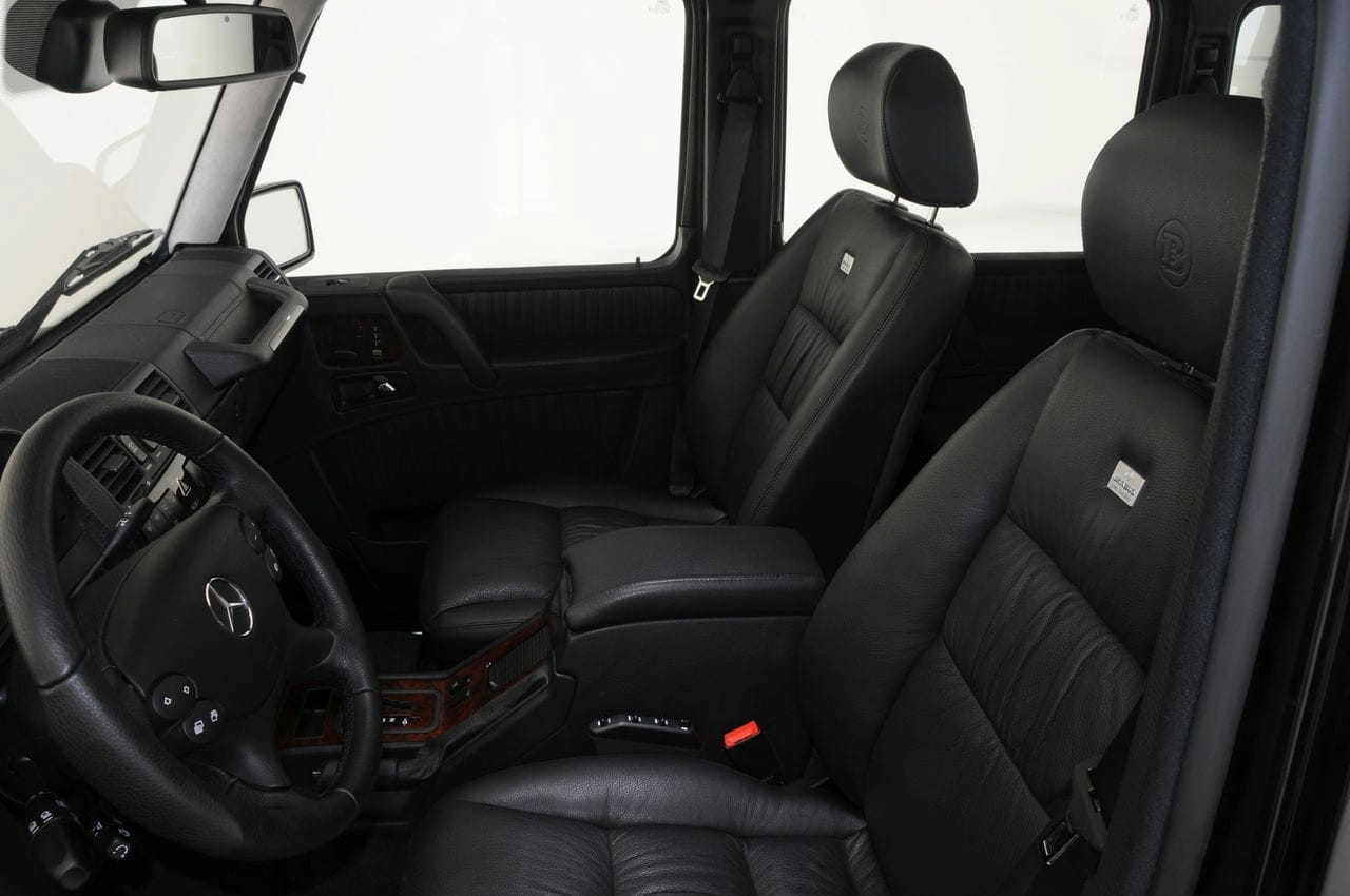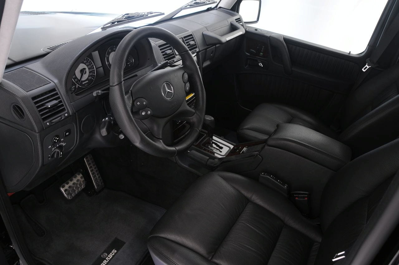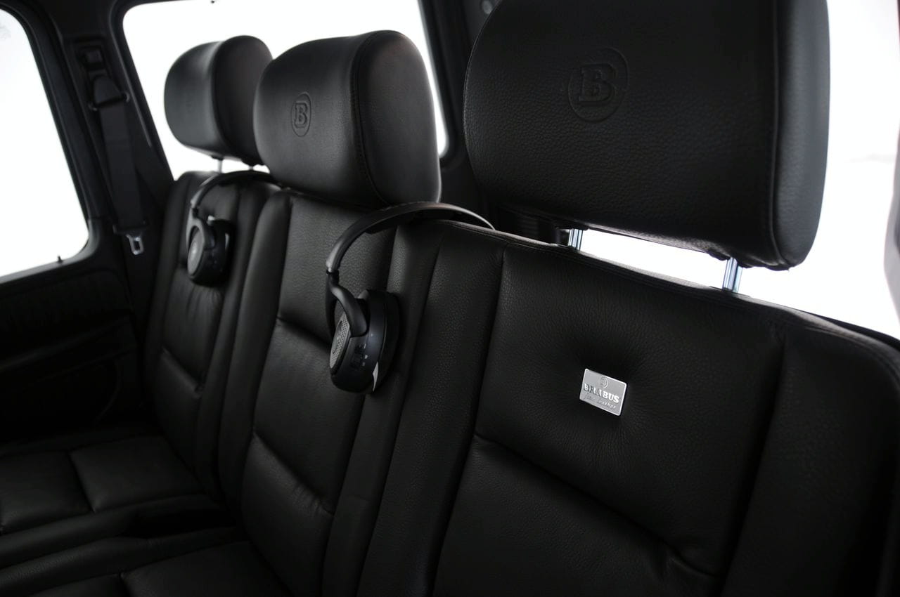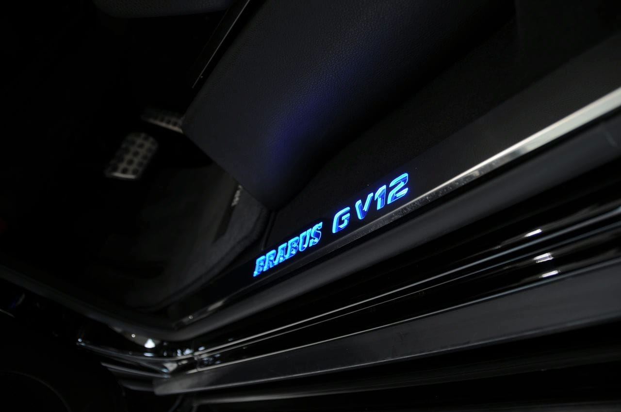 Pero todavía hay más. No se ha descuidado en absoluto el aspecto externo, contando con un paquete aerodinámico completo que además agraga unas salidas de escape rematadas en acero inoxidable y unas luces LED diurnas delanteras, que además pueden ser controladas a través del mando a distancia. Por dentro no es menos completo el G V12 S Biturbo pues incorpora placas de suelo iluminadas, la piel Brabus Mastik, un velocímetro que alcanza los 280 km/h y un completo “infotainment” con receptor de televisión, DVD, consola, doble pantalla LCD de 8”, etc.