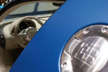 El trabajo de pintura ha sido realizado con dos tipos de pintura: “sprintblue matt” en mate y “sprintblue gloss” brillante. El motor adquiere el mismo tono que el resto de la carrocería.