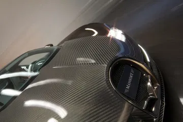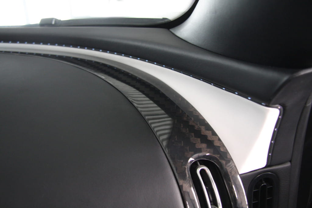 Continuando en el plano estético, las mejoras son más que evidentes, comenzando con el llamativo recubrimiento de fibra de carbono de la carrocería, el difusor trasero, y los faldones laterales, cuyo diseño canaliza el aire caliente proveniente de los frenos delanteros, recordando a los modelos de competición. Sin olvidarnos tampoco de las nuevas llantas oscurecidas, de diseño específico, con radios en forma de aspa de turbina, que casan a la perfección con el conjunto.