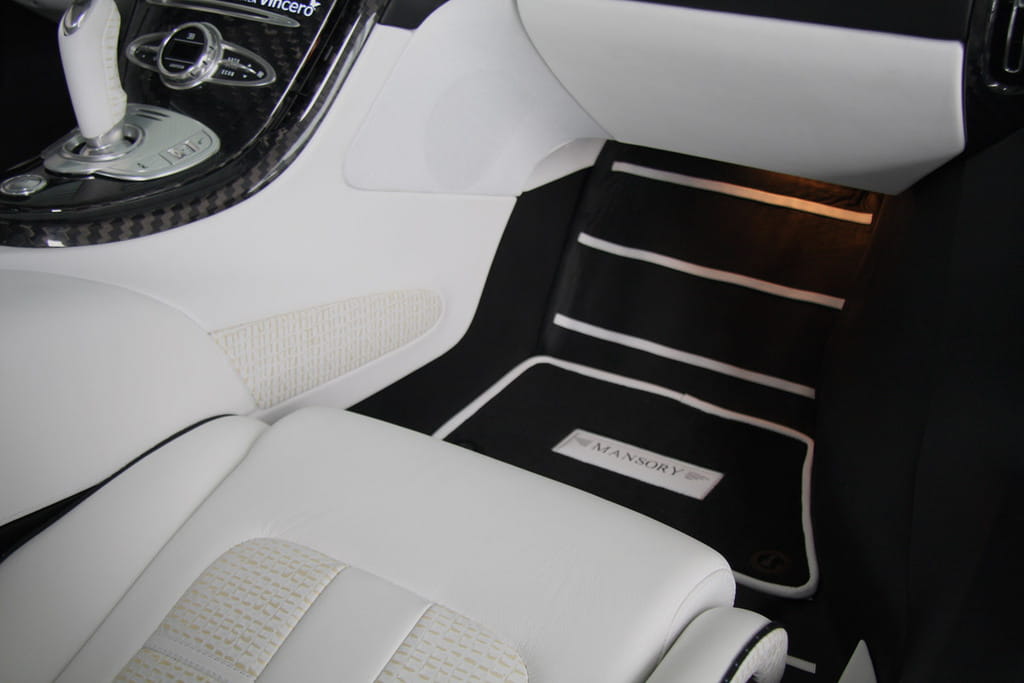 Es en el interior donde Mansory da lo mejor de sí mismo y presenta un conjunto único tremendamente lujoso que integra un revestimiento integral de cuero blanco con inserciones de rayas negras terminado a mano, por supuesto, con las molduras de fibra de carbono. Otra particularidad es la inclusión de varias líneas de iluminación LED tanto por el contorno de los asientos como por los paneles de las puertas y la parte superior del salpicadero, lo que le da un toque especial.
