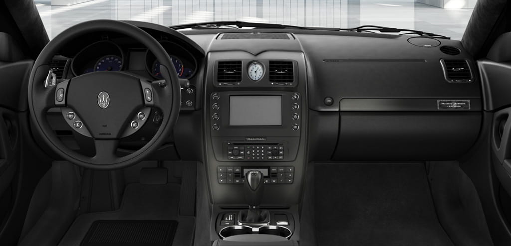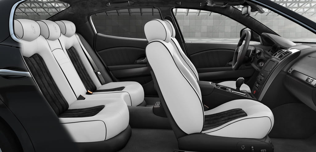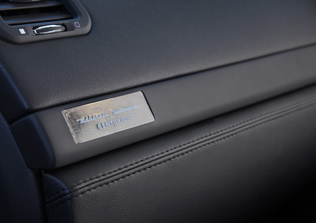 La búsqueda de una plaquita identificadora recae directamente en el interior, situada encima de la guantera y numerando la unidad exclusiva. En cambio la imagen del “Centurion” también aparece reflejada en las cabeceras de los asientos, terminados en una piel Poltrona Frau en color Bianco Polare. De esta forma el apoyo para los pasajeros se destaca del resto del interior en el que predominan los colores muy oscuros y ciertos detalles en acabado metalizado.