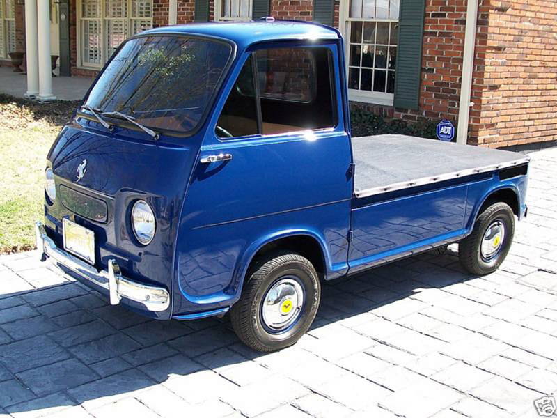 Está basado en el Subaru Sambar Kei del año 1969, un modelo muy extendido en Japón, que ha cambiado bastante. Por fuera conserva su apariencia de urbanita de carga incorporando detalles concretos cercanos a Ferrari con varias insignias: el logo del caballo en el frontal, las siglas en la parte trasera y los tapacubos con el conocido logo del equino en negro con fondo amarillo. Esta es sin duda la parte menos “retocada”.