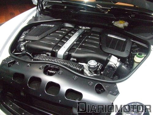A continuación abren el capó y presencio el 6 litros W12 con dos turbocompresores que manda 800 Nm a las cuatro ruedas. Bueno, como en todo automóvil moderno realmente no se ve casi nada, es curioso como en este tipo de coches cuidan el detalle hasta en aquellas partes que no quedan a la vista. Este motor rinde 630 CV, hace el 0-100 Km/h en 3,9 segundos y llega hasta las 329 km/hora. Números de superdeportivo que alcanzan más merito cuando se consiguen tirando de más de dos toneladas de peso. El consumo mejor ni pensarlo pero al menos podría ser peor ya que puede emplear bioetanol E85 como combustible y es “menos contaminante”.