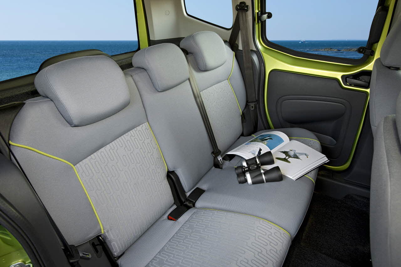 El interior está absolutamente enfocado a la practicidad, sin equipamiento superfluo. La versión Outdoor cuenta con un vistoso tapizado (con ribetes de color) de los asientos en tela Trip, material en el que también se encuentran revestidos los paneles de las puertas. Estará disponible con un nivel de equipamiento denominado Confort +, que incluye, entre otros, los siguientes elementos:
