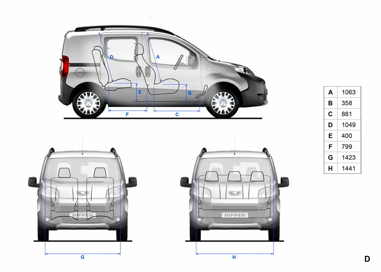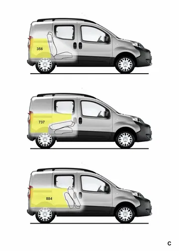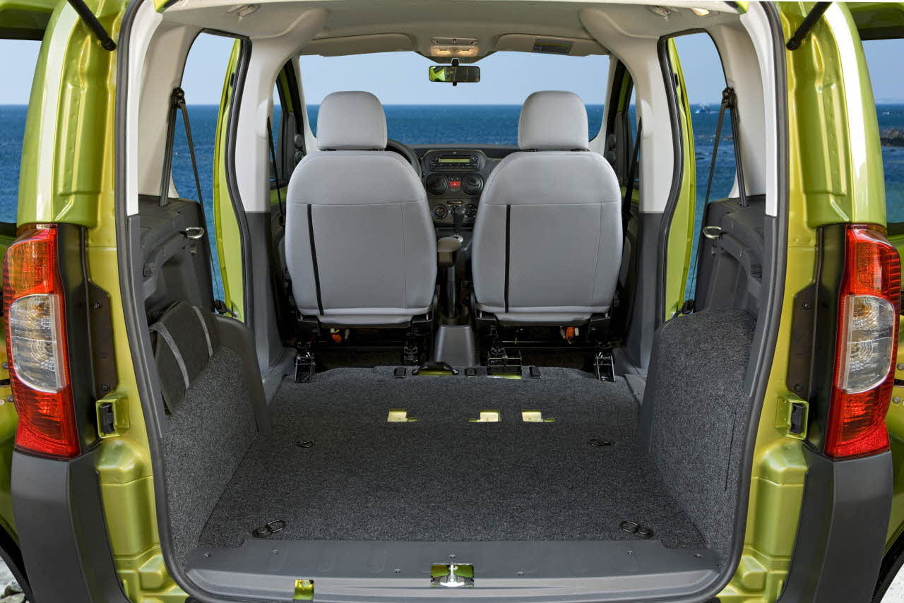 Si se decide a abatir los asientos la capacidad aumenta hasta alcanzar 2.500 litros cuando la banqueta trasera se saca de su emplazamiento. Las dimensiones del maletero con esta configuración son de 1,18 metros de altura y una longitud de 1,6 metros. Por ello, y dado que las puertas laterales son correderas, las posibilidades que ofrece el Beeper Tepee son enormes en el ámbito del ocio deportivo de fin de semana.