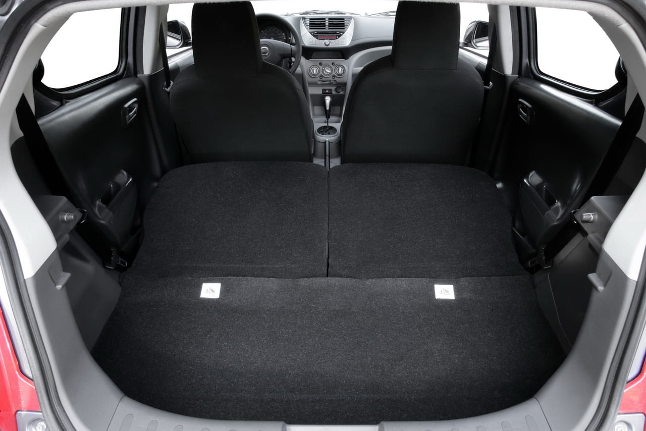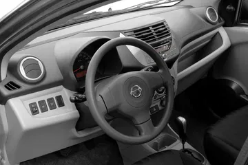 El interior del Pixo es bastante simple, de hecho la instrumentación está compuesta simplemente por un velocímetro redondo que muestra, además de la velocidad, un indicador digital del nivel de gasolina y el cuentakilómetros. El salpicadero está revestido en plástico de color negro y gris, lo que le da un toque juvenil. Por el habitáculo se reparten numerosos huecos y guanteras donde alojar objetos pequeños, incluyendo un cajón iluminado en el salpicadero, justo encima de los mandos de la calefacción. Las ventanillas de las puertas traseras tienen apertura de tipo compás.