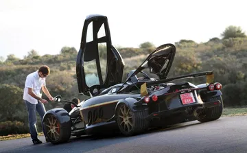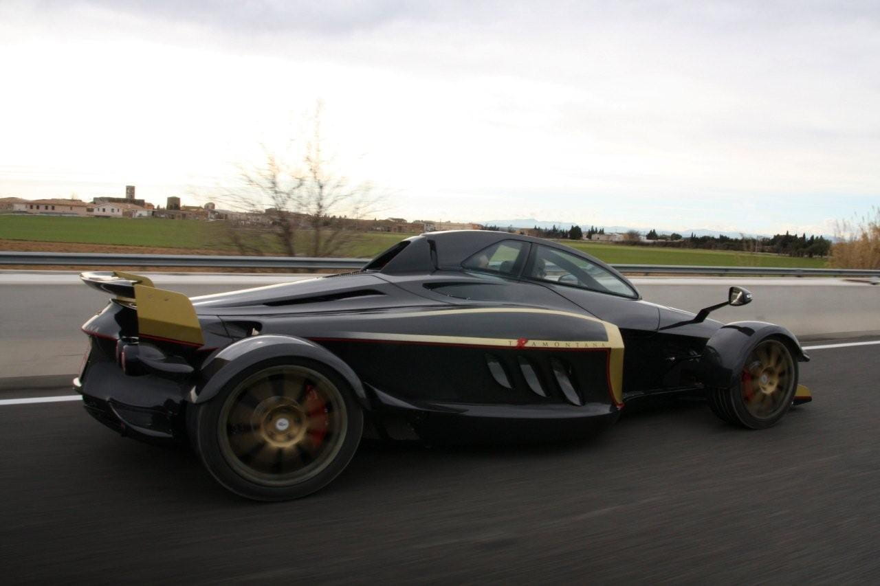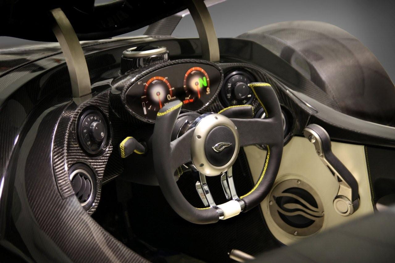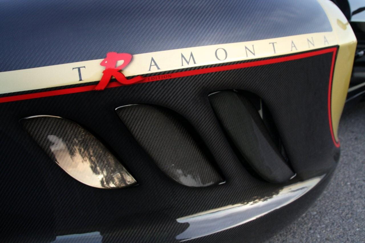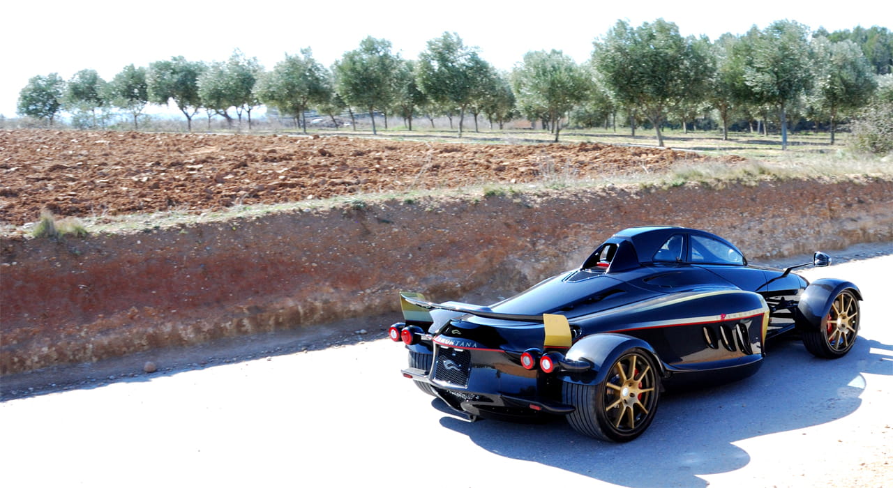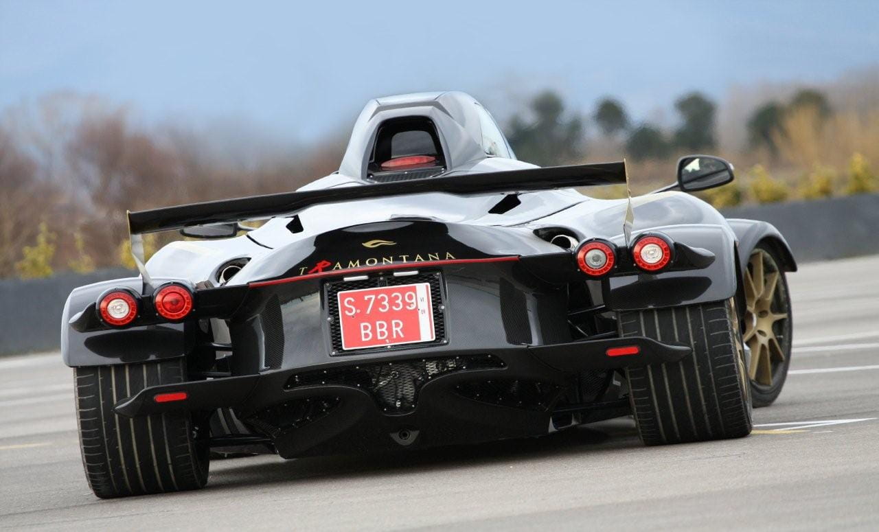 Normalmente el propulsor entrega 550 CV, a la pulsación de un botón la potencia se eleva a 720 CV y 920 Nm de par máximo. Toda la potencia pasa a las ruedas traseras – de sección 335 – a través de una caja secuencial de seis velocidades. Con semejantes antecedente a nadie sorprende que el ligero Tramontana R acelere hasta los 100 km/h en 3.7 segundos y que pulverice la barrera de los 200 km/h en 10.15 segundos. De pararlo se encargan unos Brembo con discos de 380 mm de diámetro y pinzas de 6 pistones.
