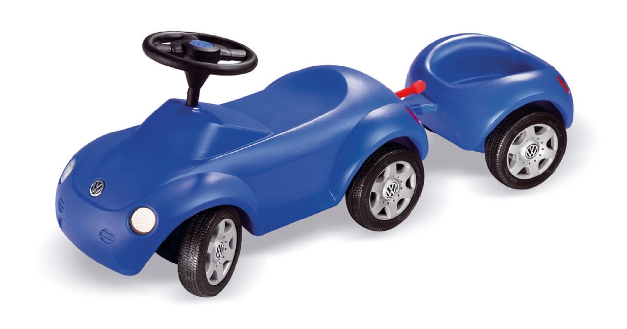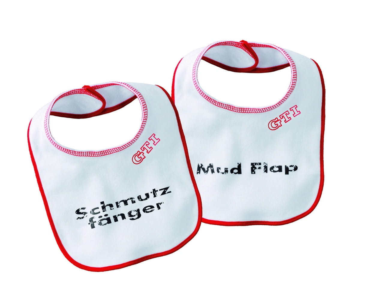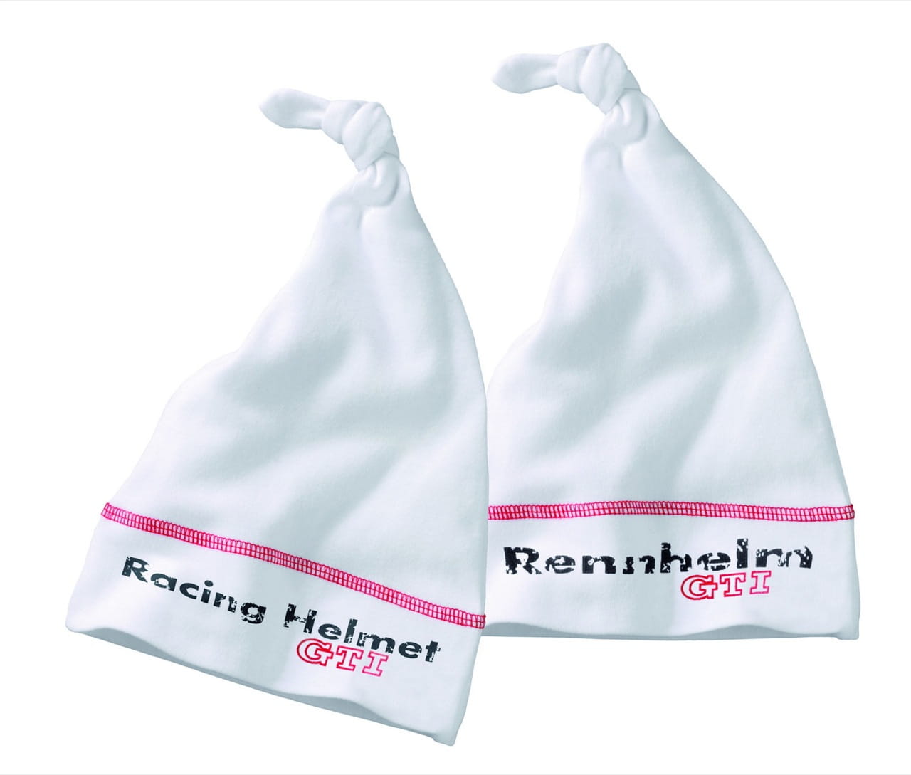 Más que nada está orientada hacia los niños pequeños, pues para ellos incluye por ejemplo baberos y gorritos con las siglas GTI y el tradicional. Lo mejor son las frases que adornan cada uno, muy adecuadas y “bastante” relacionadas con este mundillo: “guarda barros” y “casco de competición”. Para ellos también se incluye un cochecito Beetle a escala que incluye además un remolque, supongo que para llevar un compañero de viaje a través del pasillo.