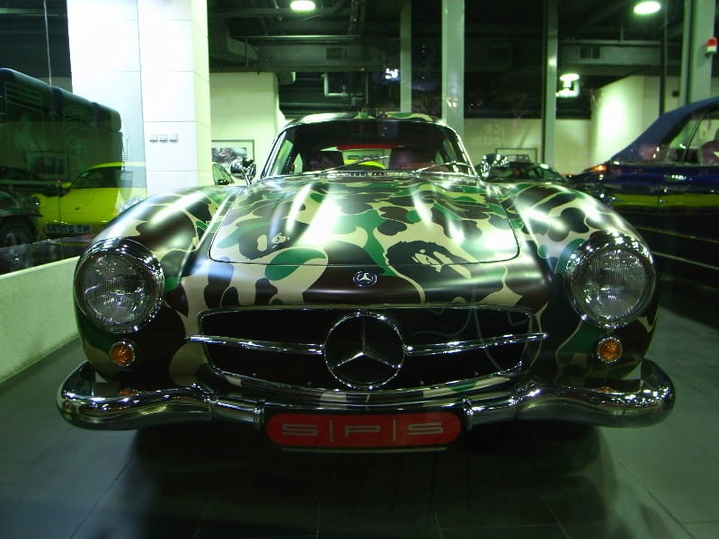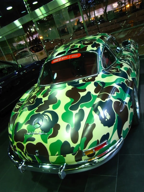 Realizar preparaciones sobre este fantástico clásico es algo extremadamente delicado, podemos dar al traste con su equilibrio natural a la más mínima. Nigo, un diseñador de moda japonés propietario de Bathing Ape (BAPE) – una conocido marca de ropa urbana – ha decicido tunear su impoluto 300SL. Para ello ha acudido a AMG, a los que ha encargado todo tipo de modificaciones sobre su clásico. El resultado final es ciertamente pavoroso, a la vista de las imágenes queda patente. Ahora metamos un poco más el dedo en la llaga.