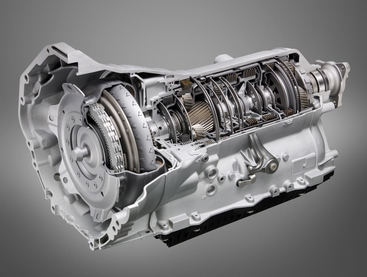 Toda la potencia pasa a las ruedas traseras a través de una innovadora caja de cambios automática de nada menos que 8 relaciones. Desarrollada por ZF, es casi tan eficiente como una caja de cambios manual, concretamente el 98%. Es reseñable que a partir de la sexta relación ya no se hace patinar el embrague, con evidentes beneficios en gasto de combustible. La moderna caja permite kick-downs muy agresivos, de 8ª a 3ª por ejemplo, a la vez que posee un funcionamiento extremadamente suave.