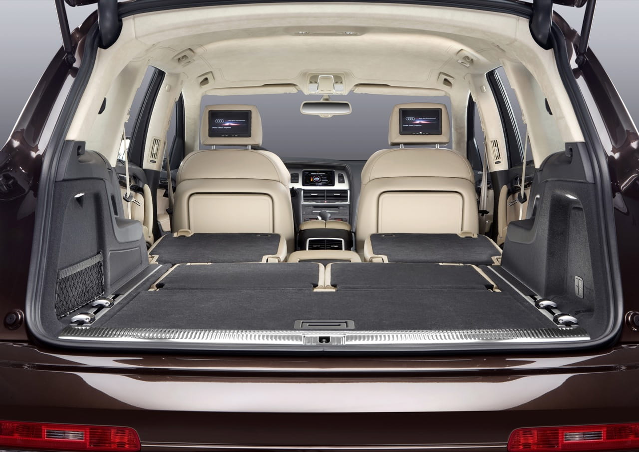El amplio espacio del interior es uno de los valores clave del Q7, gracias a su amplia batalla de tres metros de longitud. La distribución de los asientos en este SUV de siete plazas se mantiene en la más original posición 2+2+3 para los ocupantes, distribuyendo la separación individual de las plazas mediante un amplio túnel que se adentra hasta la segunda fila.