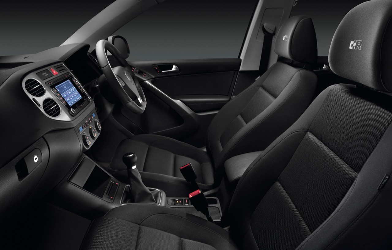 El interior de habitáculo queda finamente remozado con la inclusión de una palanca de cambios con recubrimiento en cuero y una rueda de dirección, también cubierta en piel, que incorpora mandos multifunción de diseño plano para manejar el ordenador de a bordo, el equipo de sonido o el manos libres si es que está presente. Los pasajeros se sentirán cómodos sobre los asientos deportivos con tapizado en tela y el logo R Line mientras que exclusivamente para el conductor se instauran unos pedales en aluminio.