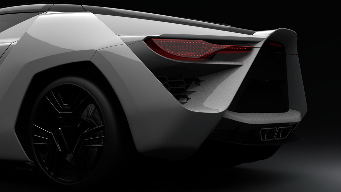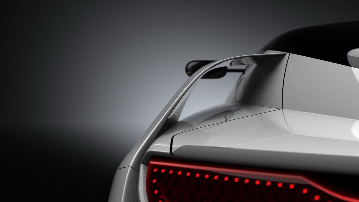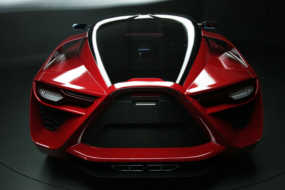 Me han llamado mucho la atención las llantas y los pasos de ruedas, un toque retrofuturista a la década de los 80, en claro contraste con el espectacular equilibrio logrado en la zaga. Lo mejor de todo es que nada es artificio, la carrocería de fibra de carbono cumple una precisa función aerodinámica, así como lo hace el fondo plano o el difusor, derivados de prototipos de competición. El resultado final es un coeficiente aerodinámico de 0.30 y una óptima carga aerodinámica para situaciones de alta velocidad.