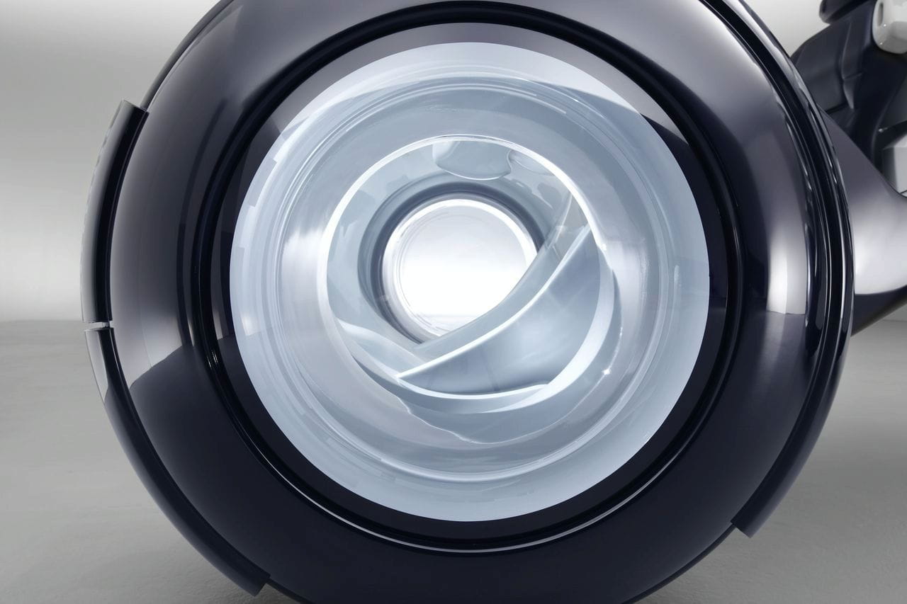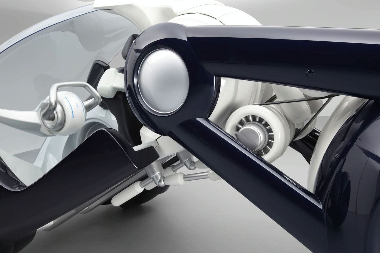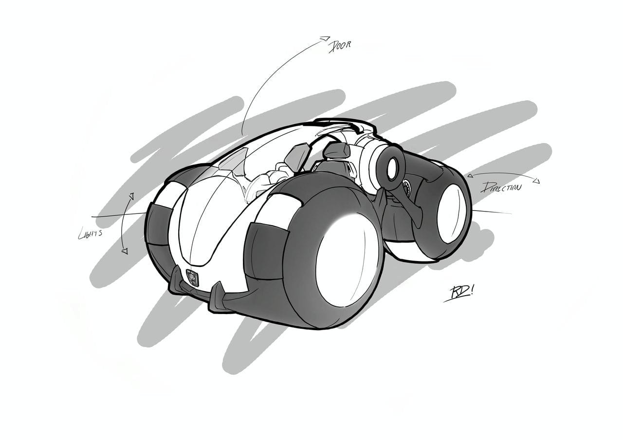 Es un monoplaza de estructura flexible mediante un eje central que permite variar la distancia entre ejes. La parte delantera se sustenta sobre dos ruedas y sobre ella se encuentra la cabina panorámica, minimalista hasta el extremo y desde la que el conductor controla el vehículo gracias a un sencillo mando. Mientras tanto en la zaga se apoya una tercera rueda que aporta la estabilidad necesaria. La propulsión corre a cargo de un sencillo y eficiente motor eléctrico.