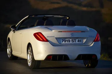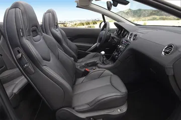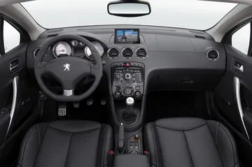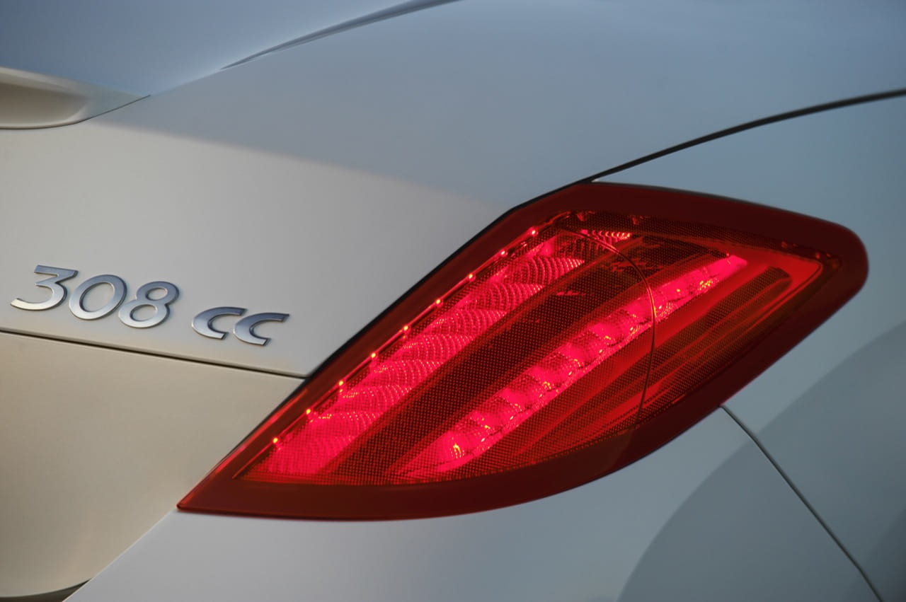 Este modelo es un tres puertas que soporta 4 ocupantes en distribución 2+2, y como ocurre con la mayoría de los cabrios de este segmento las plazas traseras no son especialmente amplias para un adulto. El diseño de la carrocería guarda el característico frontal del 308 y termina en una caída suave, auspiciada por un diseño de ópticas bien integradas. En este aspecto mejora las que utilizaba su antecesor, el 307 CC, que salían fuera de la línea del modelo.