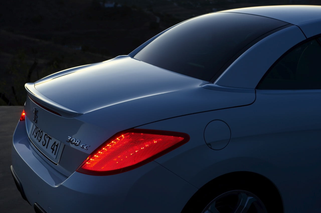Un punto importante del 308 CC es su capota. Es de techo rígido y se escamotea en dos partes, debido a la luneta de cristal instaurada en la parte trasera. Funciona de forma totalmente eléctrica y accionable desde el interior mediante un botón. Tanto la maniobra de apertura como la de clausura del techo duran un total de 20 segundos y pueden ser realizadas hasta a una velocidad de 12 km/h.